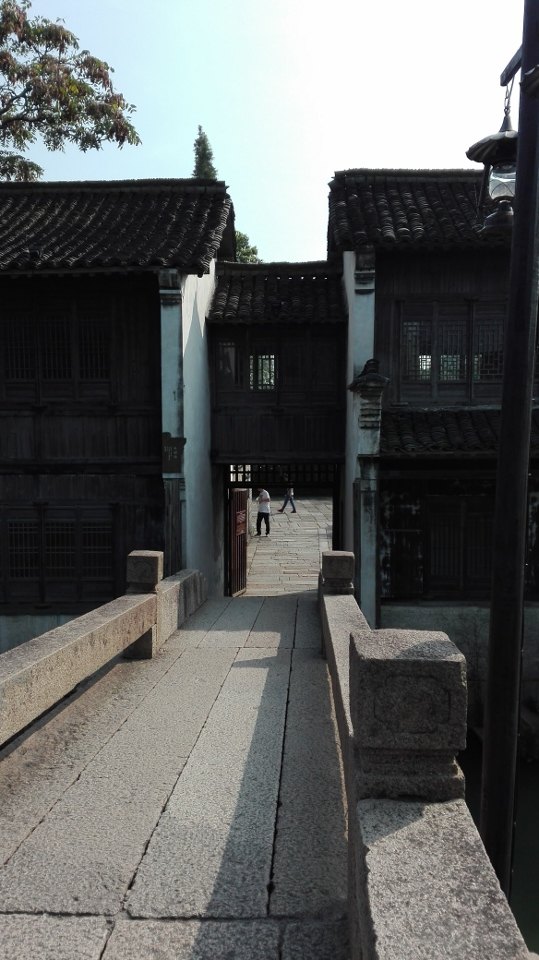 是西栅景区最西边可以踏足的桥梁,连通文昌阁和水剧场,地理位置十分重要,然而由于这里距离景区入口太远,却很少游客会踱步过来,即便是在小长假,也不拥挤。相比景区内众多的石拱桥,它显得好低调,全用长条石板铺就,是难得一见的平桥。在此回望西市河,视野比较开阔,能看到文昌阁、仁济桥等景致。