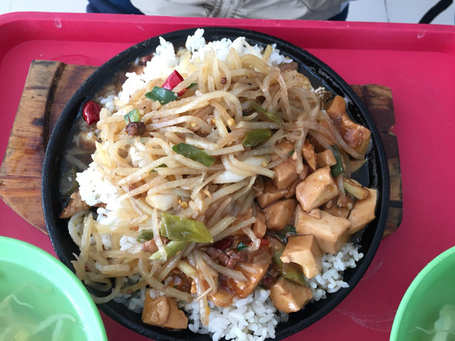 中餐:北苑食堂中餐种类非常丰富,有煎炸类,有现炒类,铁板类,淮阳特色类等多种菜品