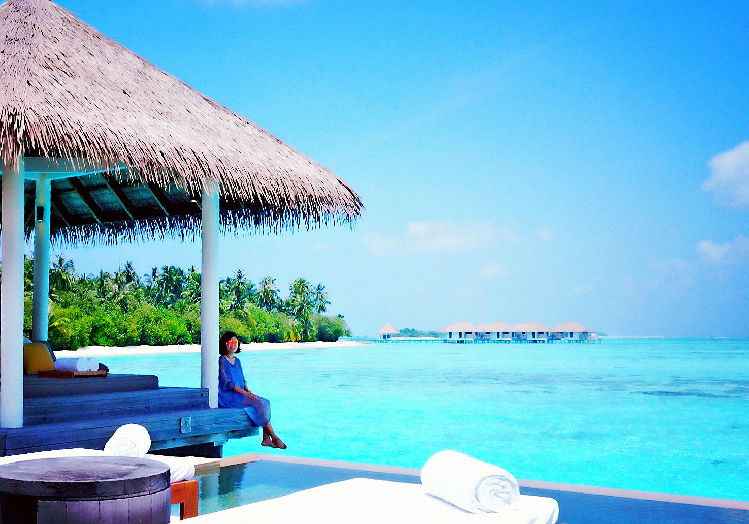 已经去过了马尔代夫四个岛屿AKV,玛丽富士,cocoa还有库拉玛蒂,见识了四种不同风格酒店,相比较AKV的富丽,cocoa的特别,库拉玛蒂的浪漫,玛丽富士给我的感觉的就像是一个安静的美人鱼一样,风景独特,尤其大爱她水屋的那个凉亭,有种罗马建筑的感觉,而且室内的浴池也灰常有特色,不同于那种千篇一律的圆形。最喜欢玛丽富士的点餐风格,说实话,我不喜欢那种自助式的包餐,虽然品种多,但是感觉就像国内的自助餐一样,中看不中吃,而且玛丽富士的餐饮是注重自然,而且精致,量还灰常多,不会让你吃不饱,个人感觉早晚餐就够吃,三餐有点浪费啦。而且景色不会让你失望,我最喜欢就是晚上在水屋的泳池里泡着看星空下的印度洋,那感觉美美哒。