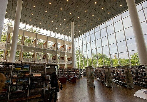 网友2016-05-05很喜欢这里超大幅的玻璃幕墙,让室内光线非常充足,而且向外看就是绿油油的树林很喜欢这里超大幅的玻璃幕墙,让室内光线非常充足,而且向外看就是绿油油的树林。自助借书和还书的机器也很不错,很多读者都是自助借阅的。