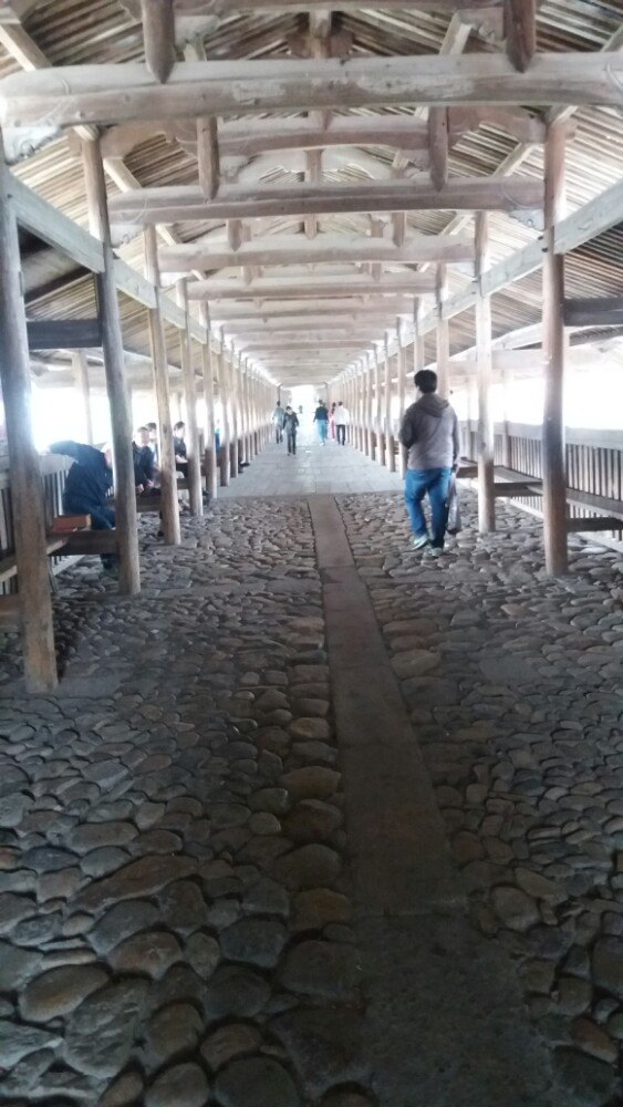 下高速,一会功夫就到了。该桥为木石结构的廊屋桥,全长125.7米,其下砌石墩5座,4孔,桥上廊屋42间,重檐顶。当心间屋顶升起,为歇山顶,翼角起翘。 永和桥桥两端有桥头堡,各为石台阶27级。桥梁采用筒支、悬臂结合式的建筑方法,桥屋雕梁画栋,飞檐斗拱层叠,桥内设栏杆、木凳。村民可以在桥内聊聊家常,看看瓯江,很是惬意。值得一去。