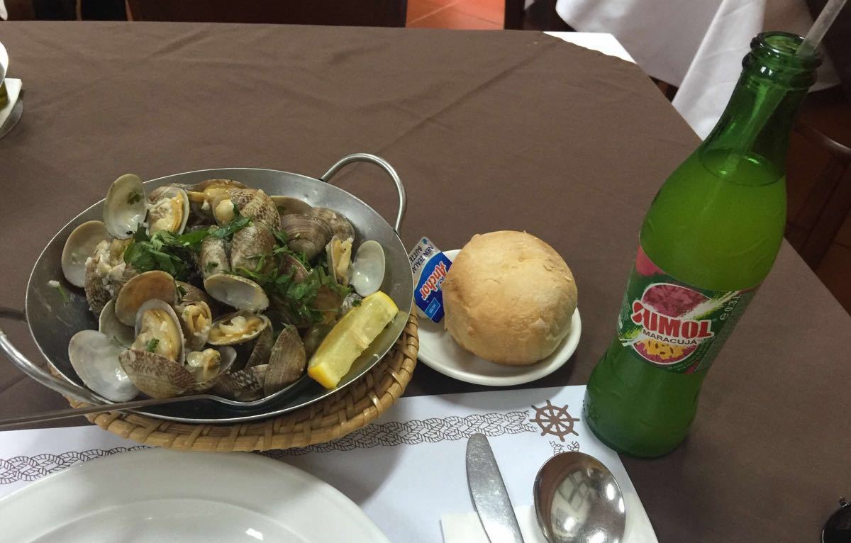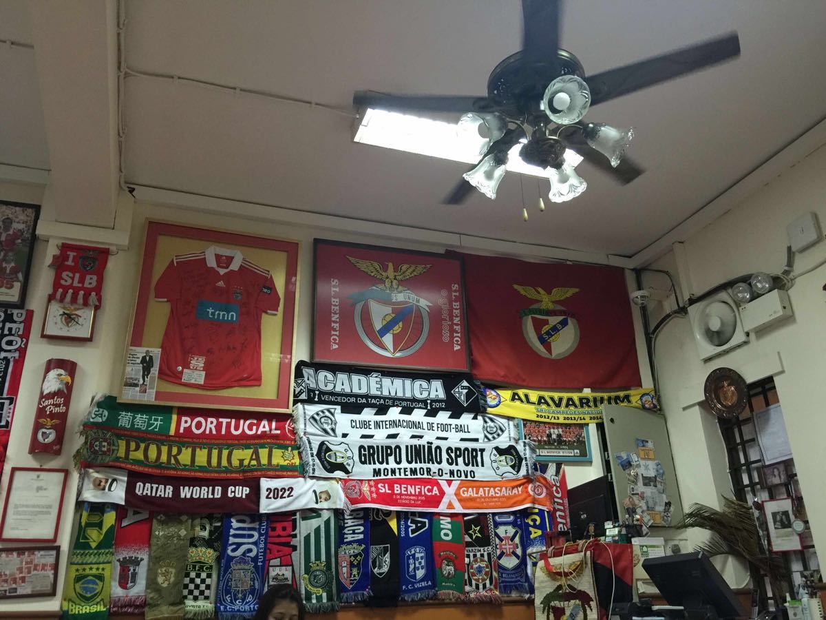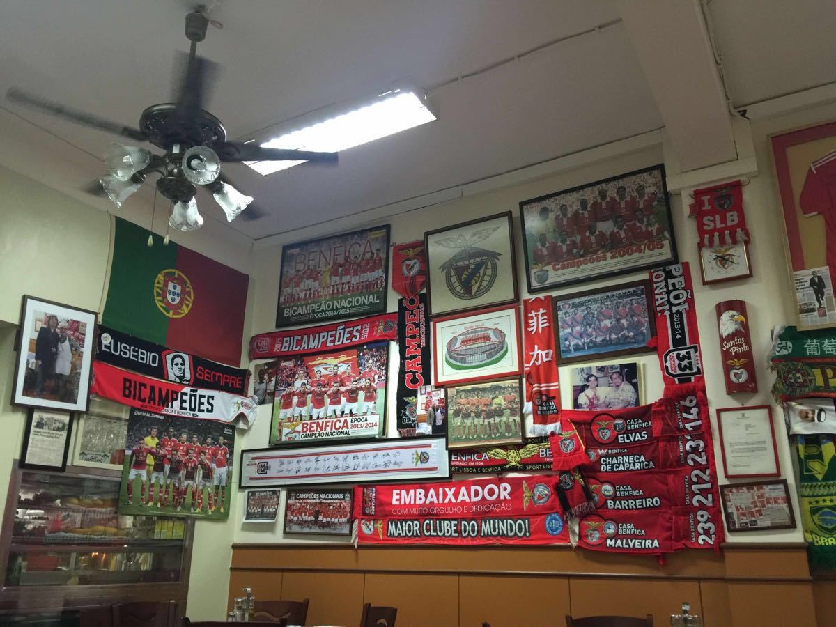 听了酒店服务员的介绍,特地过来尝尝~~中午12点开门营业,卡着点儿进去,成为了他家的第一位顾客。老板应该是葡萄牙本菲卡的球迷,店堂的墙壁上挂满了本菲卡的各种图片和纪念品~~老板是个头发有些白的葡萄牙老大叔,一进来就坐在角落里吃午餐,看来这已成为了他的常态…可能因为我是第一位顾客吧,所以他进来和在我离开时都亲切地和我打了招呼,真有点受宠若惊啊,哈哈~~ 点了白酒炒蚬和葡国鸡,味道都很不错,尤其是炒蚬,挺新鲜,个个都很饱满,也很入味,咸淡适中,也具有不同于江浙菜的独特香味,挺能接受,我一口气全部吃完啦!葡国鸡味道更香浓,有小香芹的香味,鸡肉嫩滑,基本都是鸡腿肉,真的很赞!对了,百香果味的汽水味道也很不错哦~~