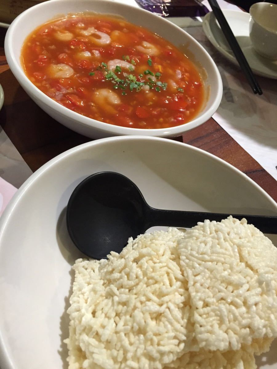暴雨中,店家小哥跑着出来接过我的雨伞、关上、再好好地收落伞架内、他因为跑得太急几乎煞不住车要扑倒在门槛上突然觉得被受宠爱生煎包皮是厚的那种,不若小杨生煎那种皮脆爆浆的,锅贴倒是意外的有这种效果,鲜茄虾仁锅巴我们以为是茄子,结果是番茄,笑死我啦!炸豆腐不错,喜欢这种椒盐味!小笼包还不错吧。