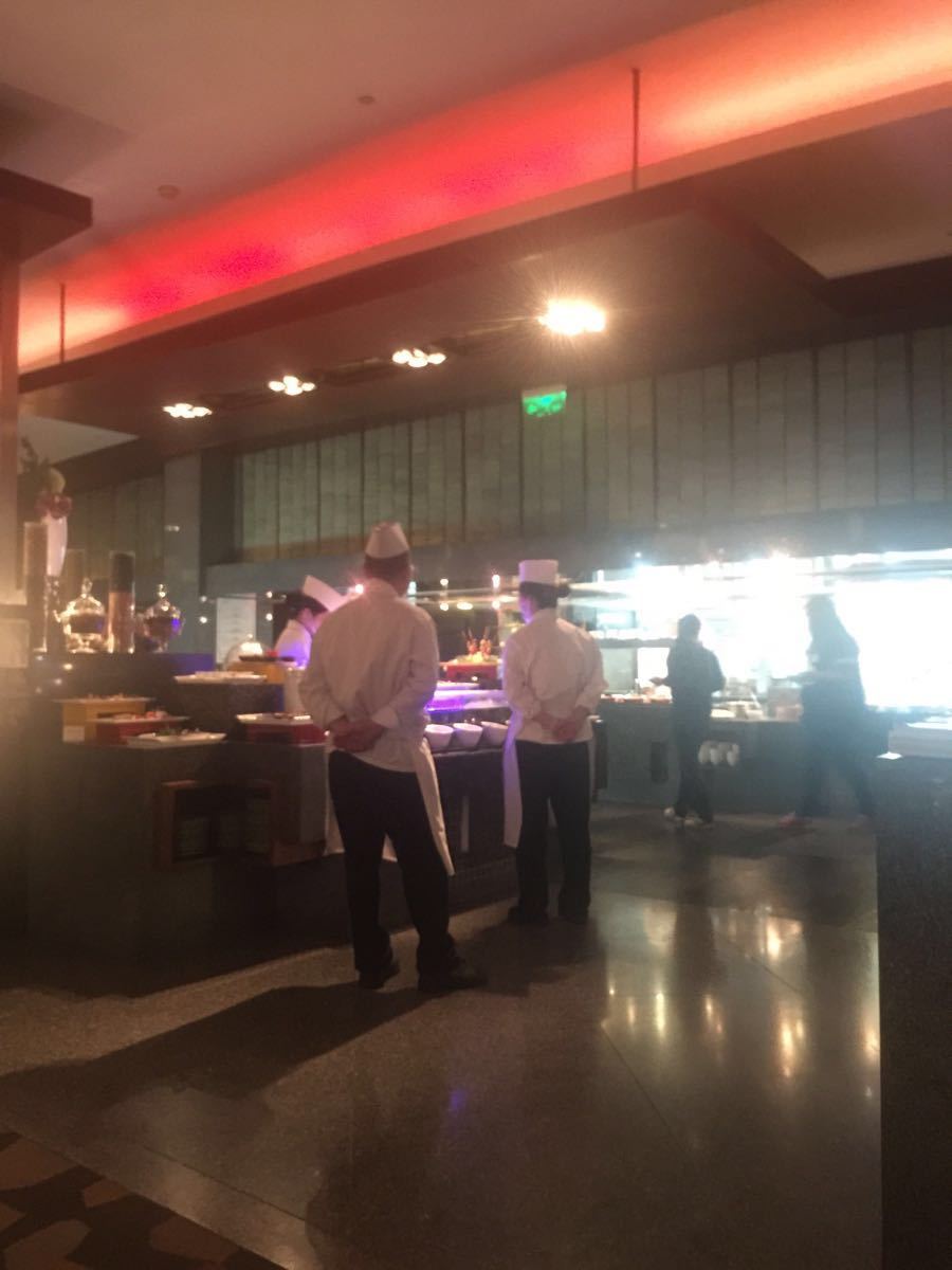 网友2016-05-19...为从品种到菜色也就这个性价比了……有鱼生六七种,寿司,热菜十几二十种吧,水果,沙拉吧,甜点都有上海体育馆出来,对面五星华庭酒店的一层,团购价格178元,不算贵,因为从品种到菜色也就这个性价比了……有鱼生六七种,寿司,热菜十几二十种吧,水果,沙拉吧,甜点都有