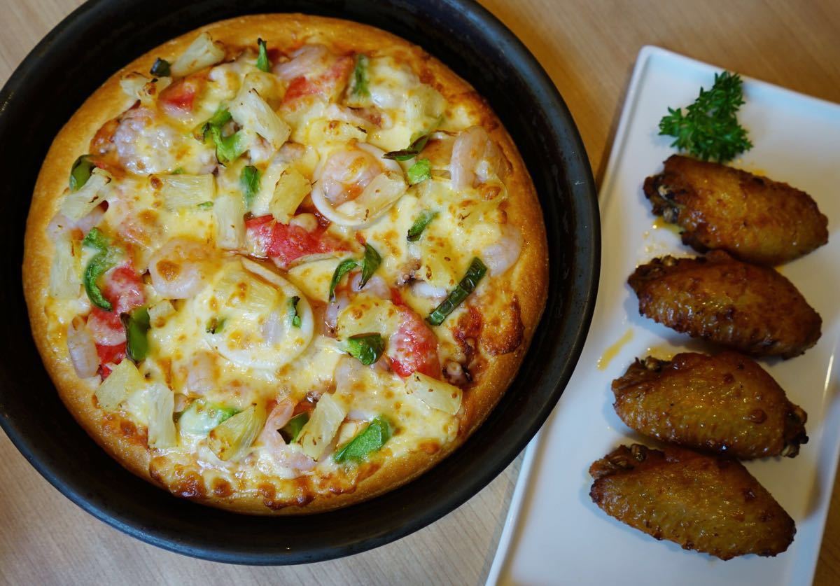点饮料送披萨这么奇怪的事居然是真的!工作餐团建首选,工作日俩人点两杯饮料就送小披萨,仨人送9寸的真值。选了价值76的海鲜至尊,料足。 从中学至今的记忆,味道没变。但是再尝试小时候新鲜的味道,也已经是不同的感受了。