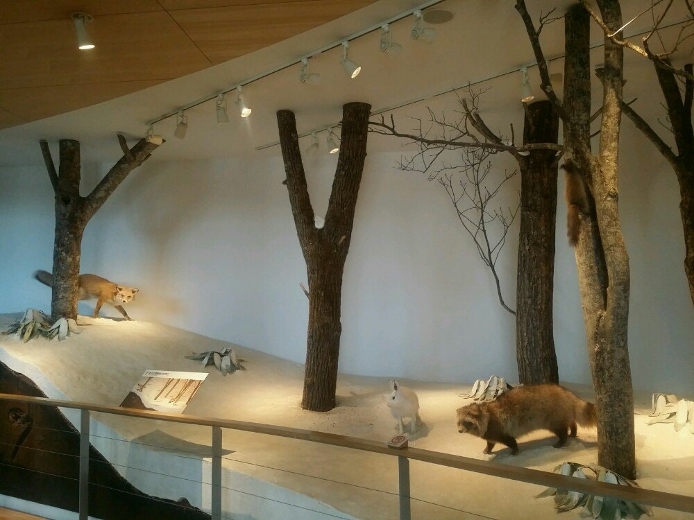 在洞爷湖道南巴士站旁边,同侧,步行过一个路口就到了,步行过去也就5分钟吧。当时欣赏完洞爷湖,等巴士前往登别的时候,时间比较富裕,就周边逛逛,看到了这家科学馆,远远看去就是一座隐藏在积雪和树林里的别致小木屋,踏着厚厚的积雪,嘎吱嘎吱一路走过去,那种情致也足以让女孩子们兴奋半天。里面有一些动物的标本展示,还有关于日本火山,湖泊的介绍。