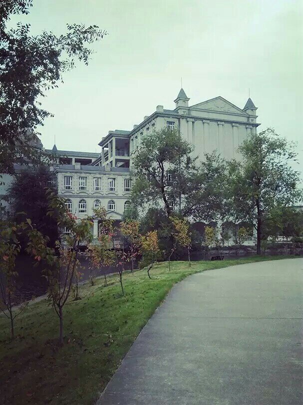 这里的草很绿,建筑很美,是欧式建筑的。那水波粼粼的岸边更是莘莘学子喜爱驻足的地方。夕阳西下,余晖更是赋予了这景这物无限美好,让人流连忘返,过目难忘。这座学府还坐落在4a级风景区的脚下,使得这里的空气也格外清新。
