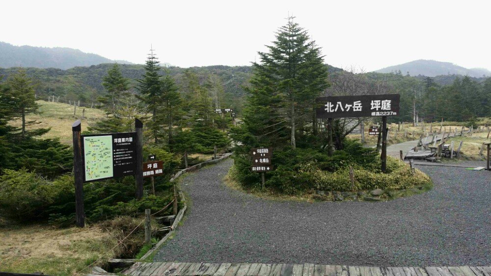 ...车的地方,叫做北八ケ丘ロープウエイ、乘缆车登到山顶,有一大圈步行的通道,可以绕着再欣赏一下风光