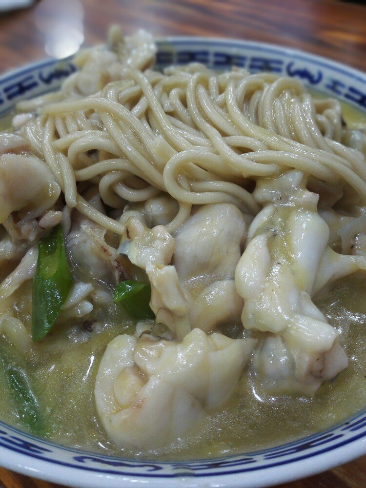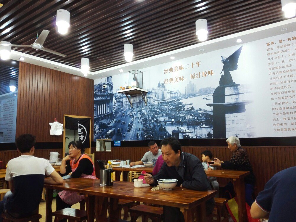 安顺路富贵面馆,闻名已久,终于有机会来尝试。店里环境非常整洁,朴实的木制桌椅,着实符合面馆的感觉。点了招牌的富贵牛蛙面,等不多时便上桌了,满满一碗,冒着热气,四溢的不是香气而是鲜气,令人食指大动。牛蛙份量十足,光泽新鲜亮丽,入口弹性足,肉质细腻嫩滑,腿肉紧致饱满且又温润。面不粗不细,口感略硬,好像特别能配合牛蛙面的鲜味,吃慢一点也不会糊。汤头很浓郁,鲜极,有胡椒粉可能是味为盖住腥味,突显鲜味,连面带汤一扫而光,海碗见底,非常满足。28元一碗,性价比很高。