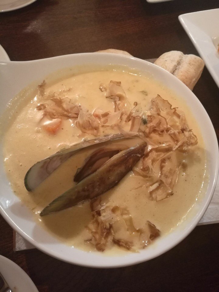 生意超好的一家店,饭点时客人满满当当,还要等位,基本游客为多。主食的量都很大,建议两人点一份生意超好的一家店,饭点时客人满满当当,还要等位,基本游客为多。烤青口贝拼盘和海鲜浓汤强烈推荐,主食羊肩肉非常嫩,保加利亚香肠有点咸。主食的量都很大,建议两人点一份。店内的墙面已经泛黄。