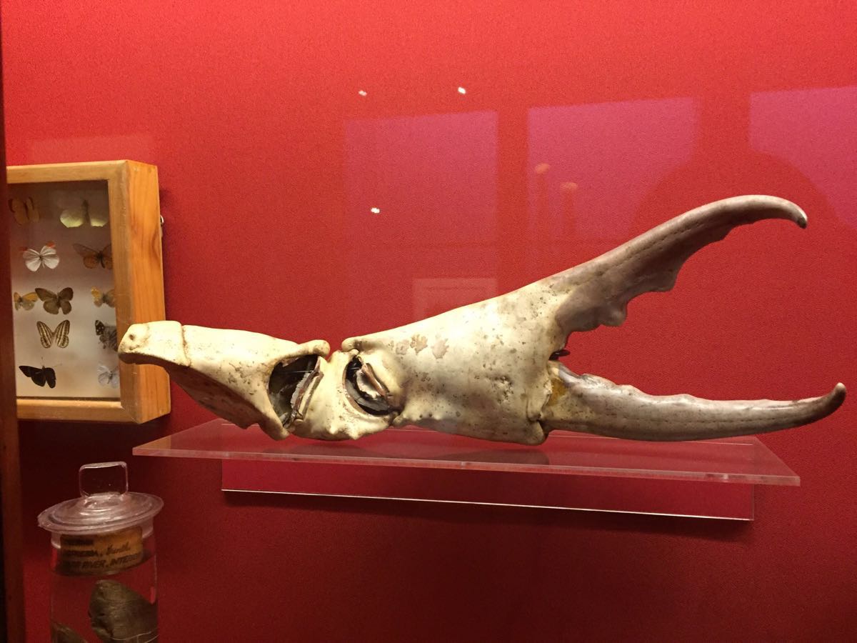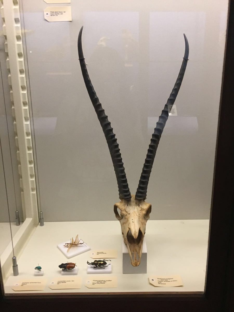生物楼边上弄堂尽头边一个小门进去,一楼有个大头骨和一个鸟标本柜子,楼梯走到3楼就是博物馆,有点防腐剂的药味,博物馆不大,不过东西非常多,博物馆用的是感应灯,人走动了就会亮起来。里面有许多动物和昆虫的标本骨架,还有矿石和过去人用的仪器,类似自然博物馆,参观免费,游客可以随便参观,很值得一看。