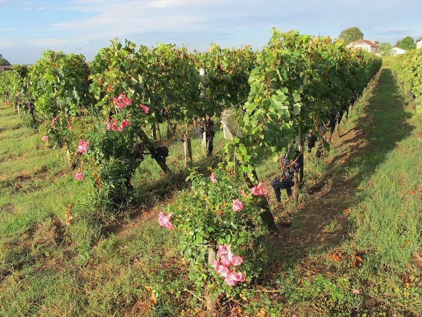 波尔多是世界闻名的葡萄酒产地,而圣埃米利永就是产地中的产地,村庄四周全都种满了葡萄。第一次看到了用于酿酒的葡萄不是高高挂在藤上,而是几乎快要贴着地的挂着果,便于成熟后机器收割。也知道了在每一排的葡萄前必须要种上玫瑰花,因为玫瑰比葡萄更容易受到病虫害侵袭,如果玫瑰焉了,那么就必须采取措施防止葡萄染病