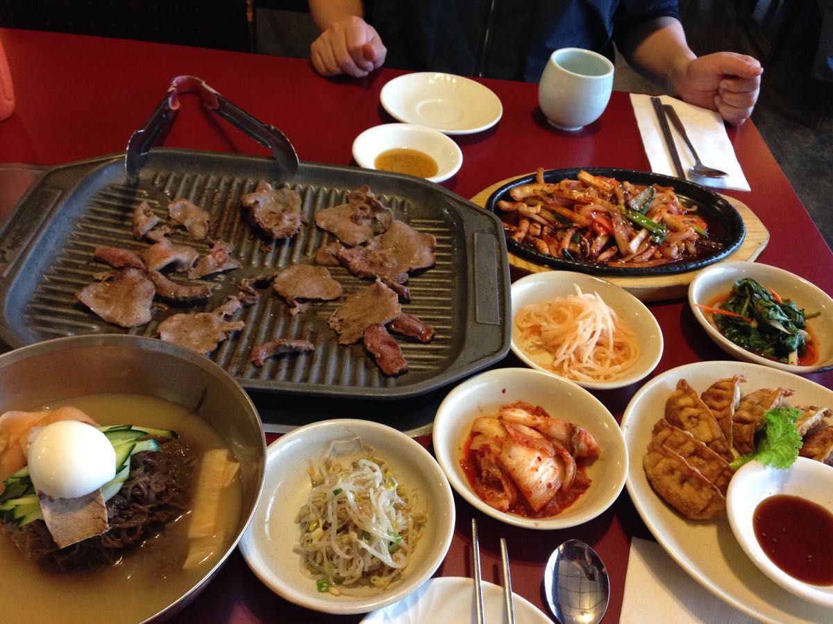 烤肉和上海的韩善宫没啥区别,价格也相当。倒是一碗冷面很过瘾班芙镇上仅有的一家韩国料理店,店面弄得挺干净的,我们点了几种烤肉和一碗冷面,还配了好几碟泡菜。烤肉和上海的韩善宫没啥区别,价格也相当。倒是一碗冷面很过瘾。