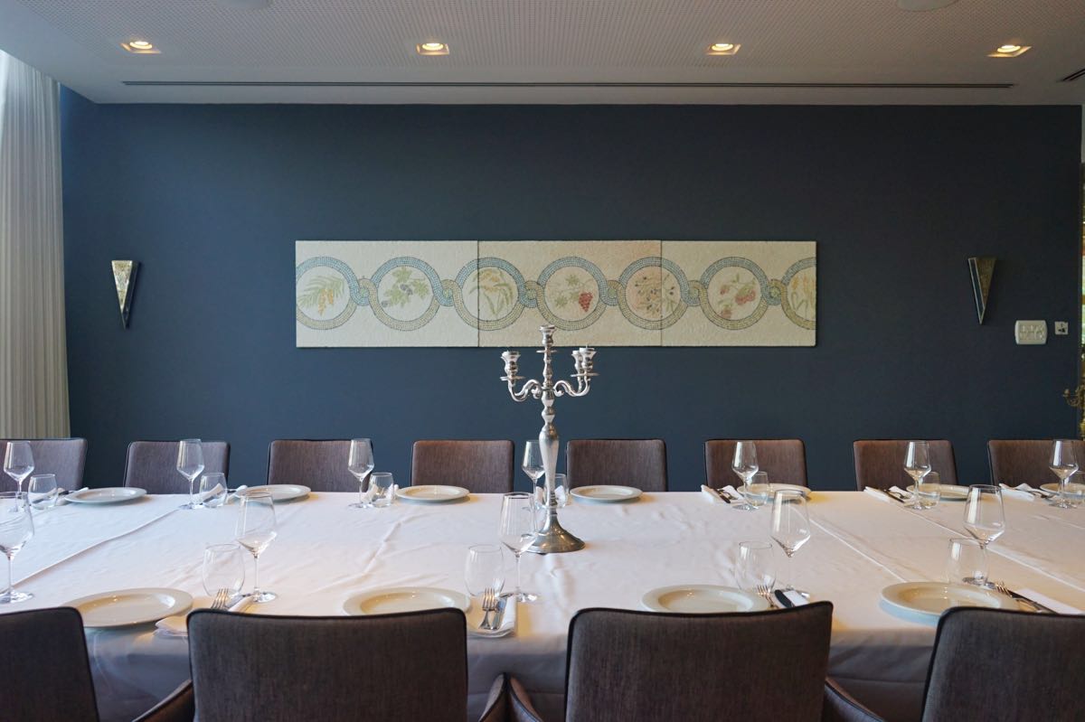 从戈兰高地下来就到了这家餐厅吃晚饭,餐厅的位置有些乡野,比邻马路和荒芜的杂草地山坡。也算是周边有人气的地方了。因为路过的都是小树林。 餐厅在二层,面积非常大,有长桌晚宴的包房,散座以及超美的露台,各种座位包括席地而坐的布垫子。餐做得精致可口,真是一顿大餐,只是上菜慢,以为没有了都吃饱了还了又上了大菜 不喜欢炸丸子。虾,菜花儿,鱿鱼圈都很好。我不错还很多种类的酒