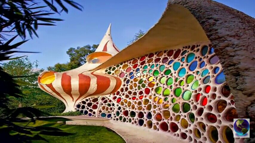 五彩缤纷的螺旋房子,充满艺术的装饰,以五颜六色的砖块建设的房子里设备齐全。