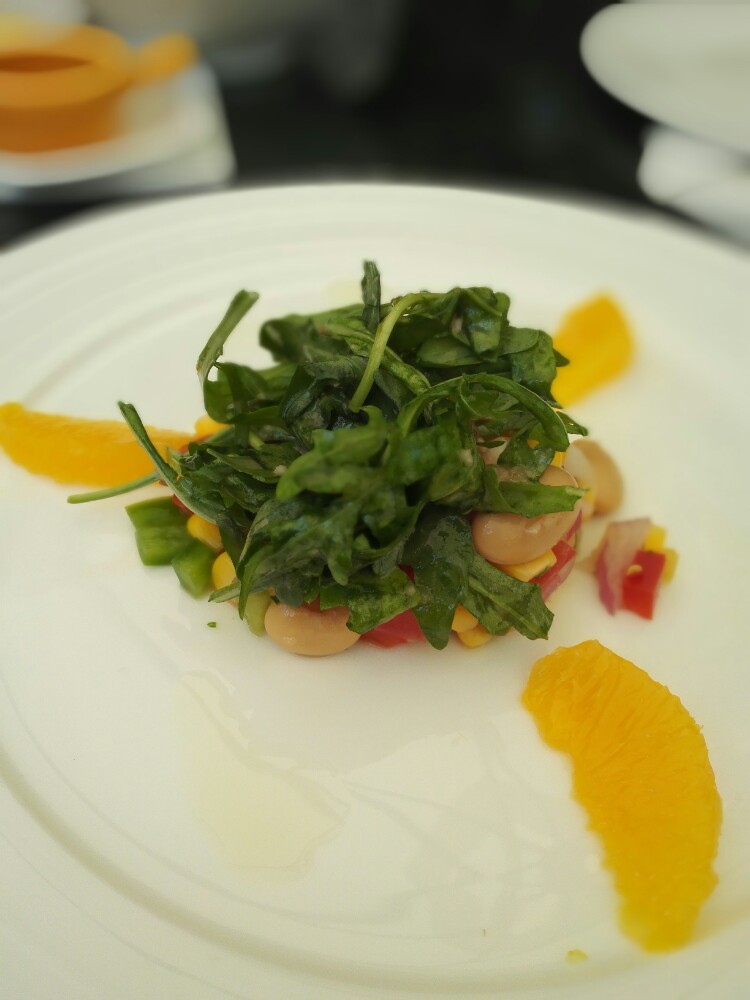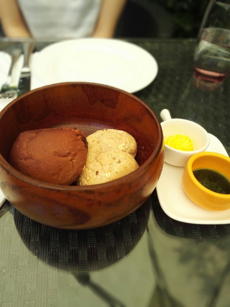 将台西路靠北的一端,略有点偏,外面看很安静低调的餐厅,走进去感觉很优雅,再往里就是个院子,室外的座位,隔着栅栏就是四得公园,绿树掩映,阳光明媚,让人特别惬意。中午的套餐,两道式118元,三道138元,性价比很好。餐包是粗粮的,微热,松软,蘸橄榄油,入口润一些,很香。头道选了牛油豆色拉,豆子松软饱满,绿叶清香,不知道是什么菜叶。主菜选了五分熟牛排,肉质略粗,比较嫩,汁较丰富,口味鲜,配的土豆泥很细腻,荷兰豆清香爽口。服务不错,响应及时,笑容非常亲切真诚。