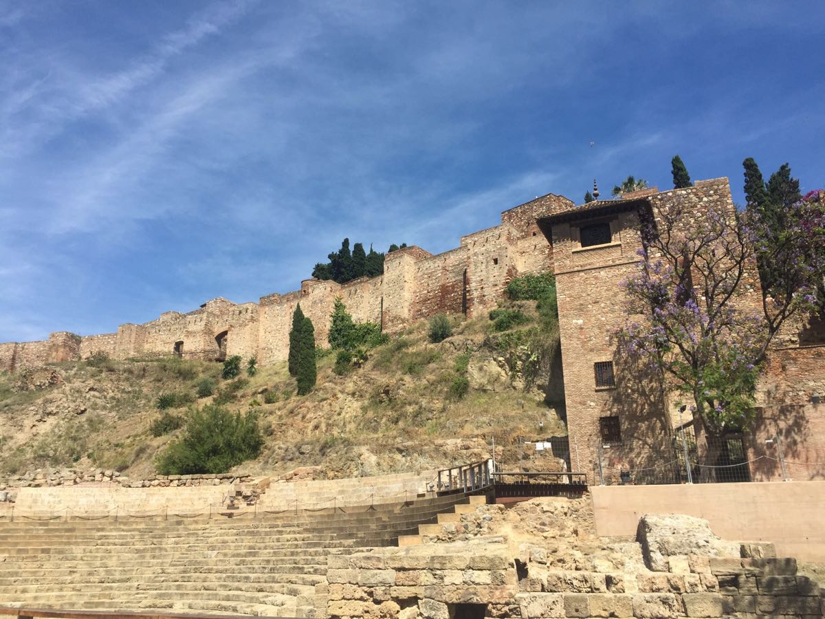 马拉加的古罗马露天剧场毗邻阿卡萨巴城堡,从城堡拾阶而下,有一片开阔地,便是露天剧场了。剧场背山面海,视野很不错,古老的剧场座位,搭配广场上现代化的展会,却也非常得和谐融洽。露天剧场的外面是一个大广场,人们用完餐,便会来这里散步闲聊,吹着地中海的海风,看着面前古代的露天剧场,非常惬意。