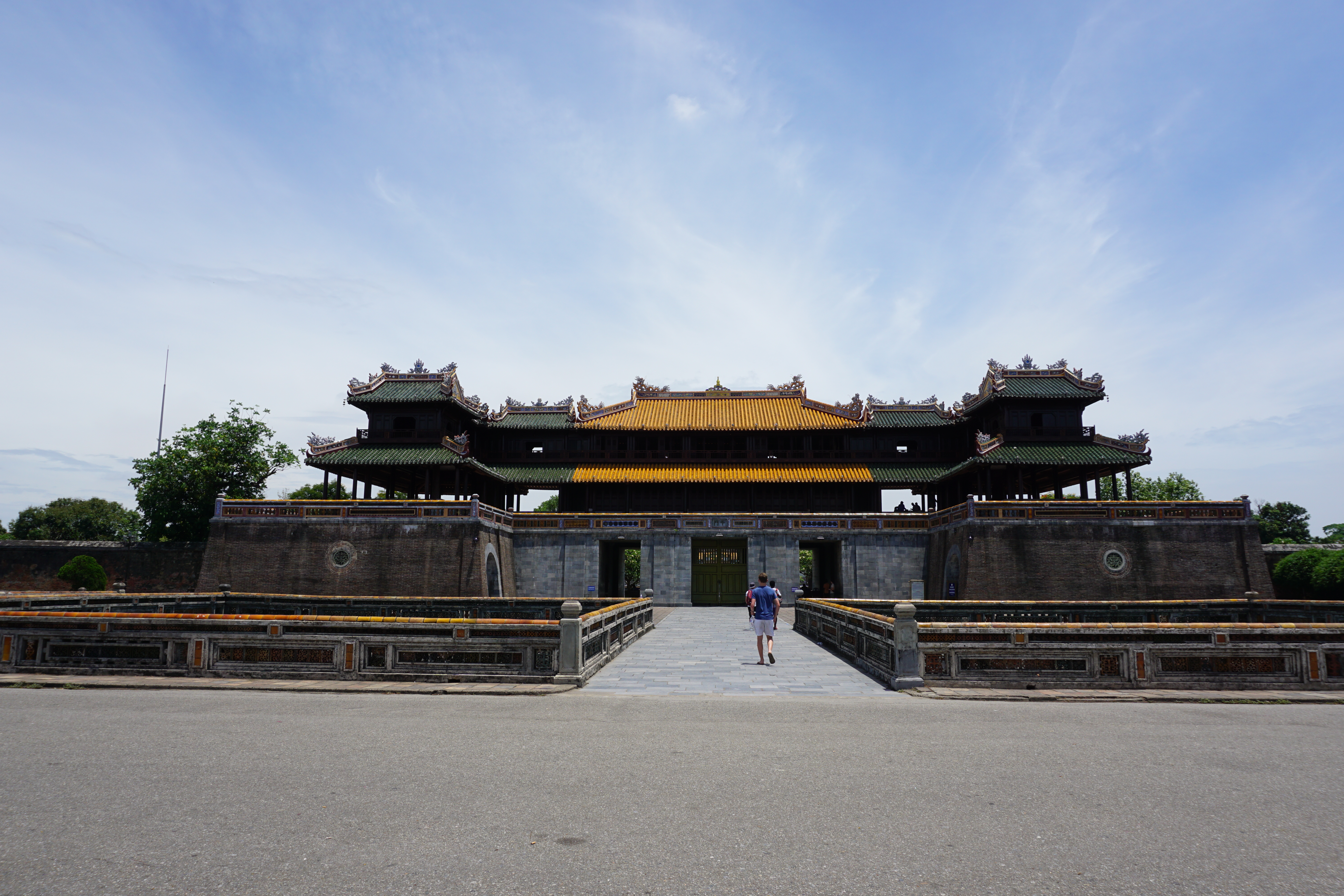 顺化皇城的午门也是整个顺化皇城的主出入要道,它的结构和北京故宫博物院的午门有点相像,但气势自然没有北京的大气磅礴。从午门进入之后就可以看到皇城的布局了。当年的皇城也许是金壁辉煌的,但现在展示在大家眼前的却只留下了一片唏嘘,有好多当年的建筑物都已经只留下了残破的砖和泥了。