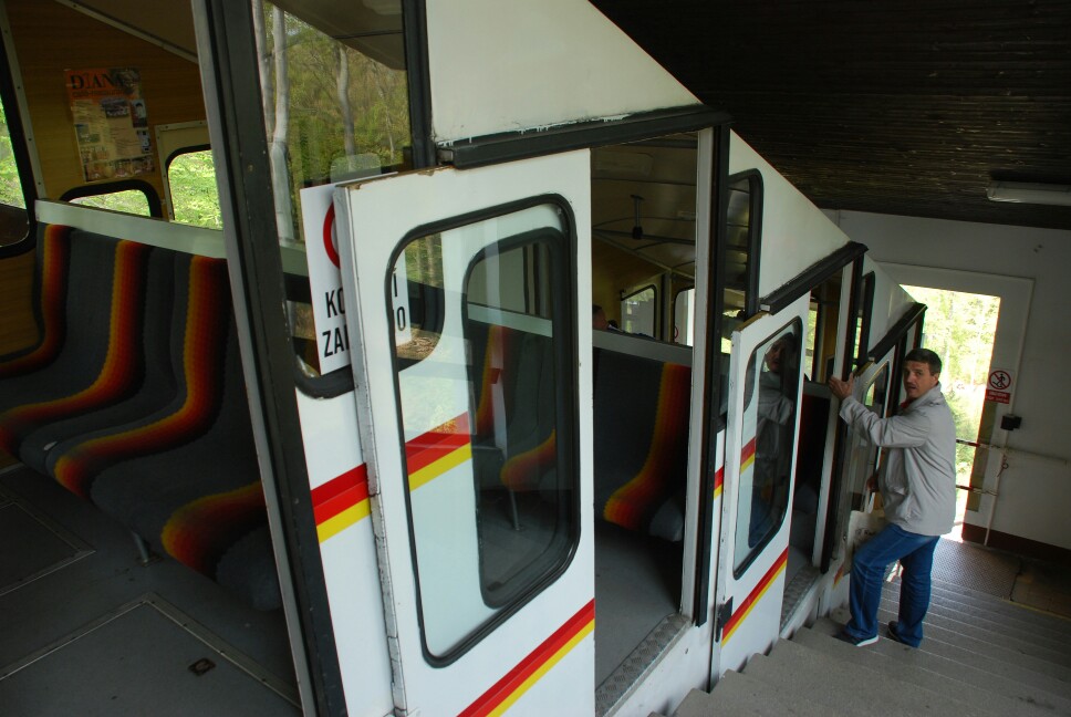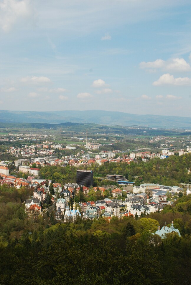 温泉水喝多了后,搭小缆车去戴安娜观景塔比较有意思。缆车处在一个小窄巷里,有固定时间发车,去时正赶上,人家还等了我几秒钟,因为赶时间,基本上到山顶后,快跑到观景塔,电梯还坏了,一路爬楼登塔,匆匆看了下景,再跑去缆车,好险赶上了。如果有更多时间,可以在山顶多待一阵的。