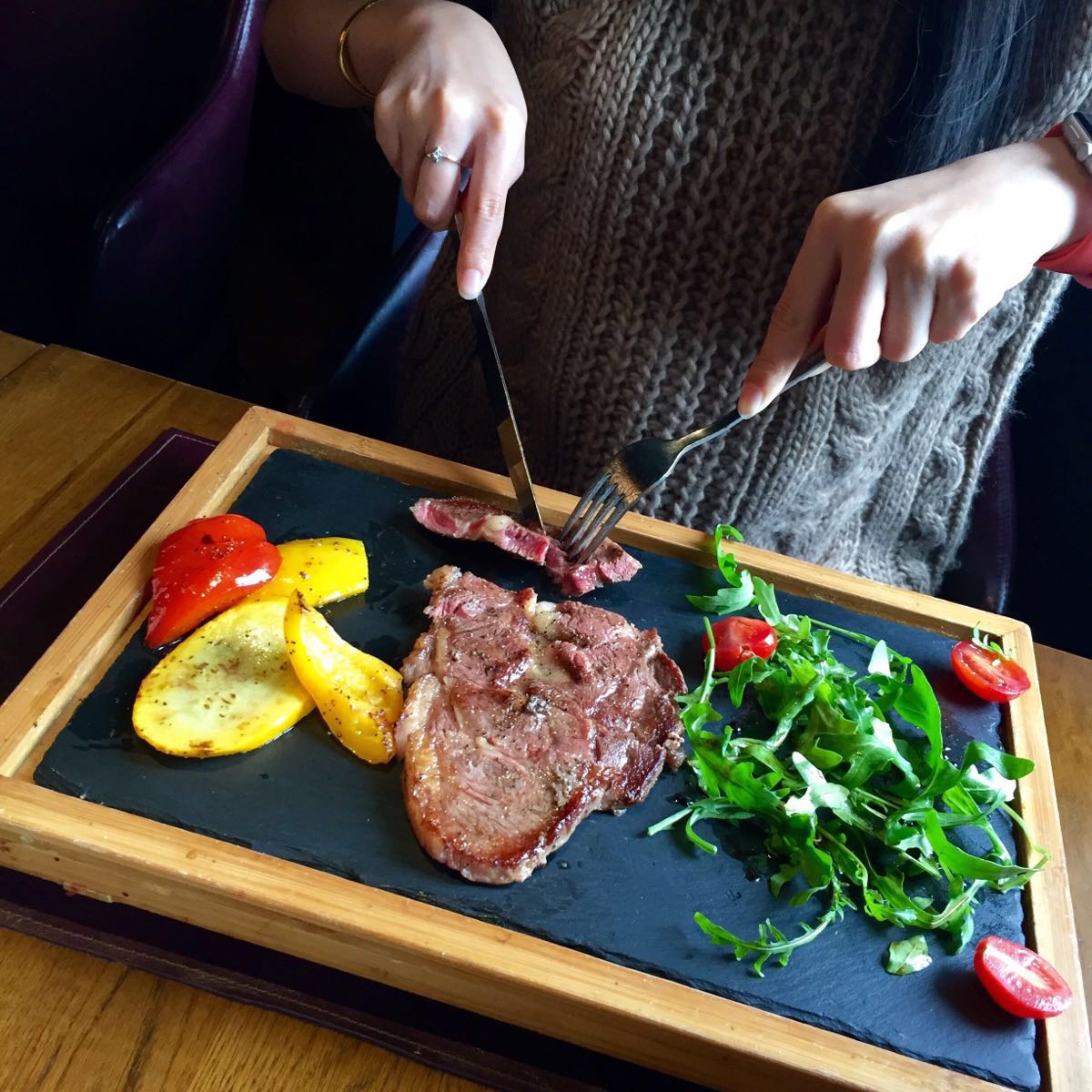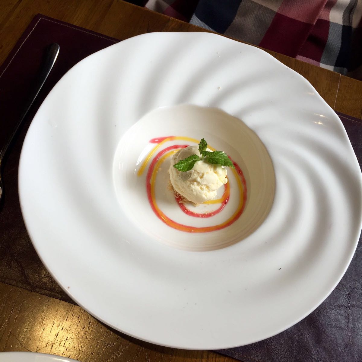 特意提前定了个靠窗位,隔窗相望中山东一路车水马龙、川流不息,不远处的观光平台上游客如织,有相互依偎的情侣、有远道而来的游客,感觉非常不错,整家店貌似也就2-3个靠窗位,建议提前预定!午餐性价比非常高,前菜选了澳大利亚M5牛肉赤身、菠菜色拉鹌鹑蛋,主菜最好吃,扒多汁澳大利亚M3牛板腱翼肉,牛肉煎得刚刚好汁水充足,搭配的彩椒也很好吃,甜点是香草冰激凌和菠萝卡巴秋,各有千秋。晚上来应该更有味道,强烈推荐!