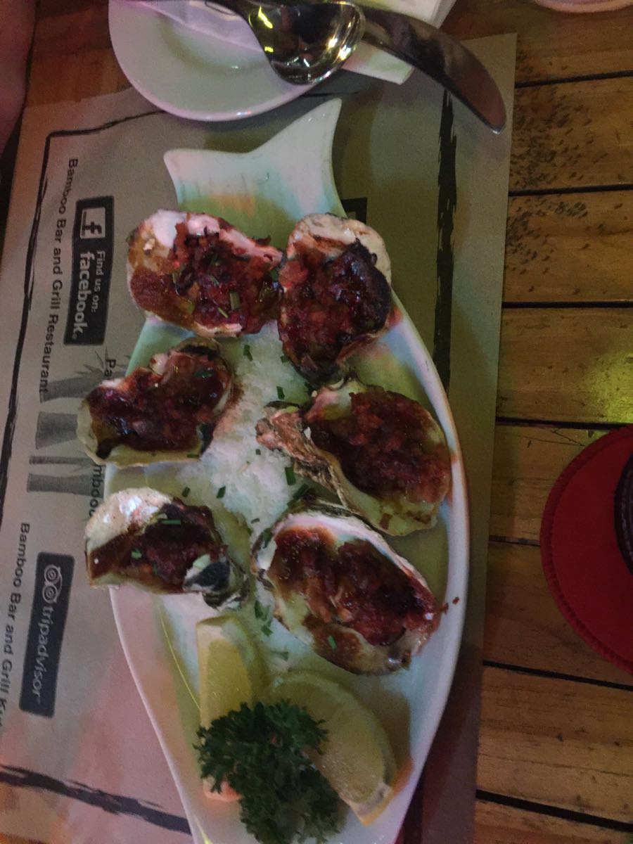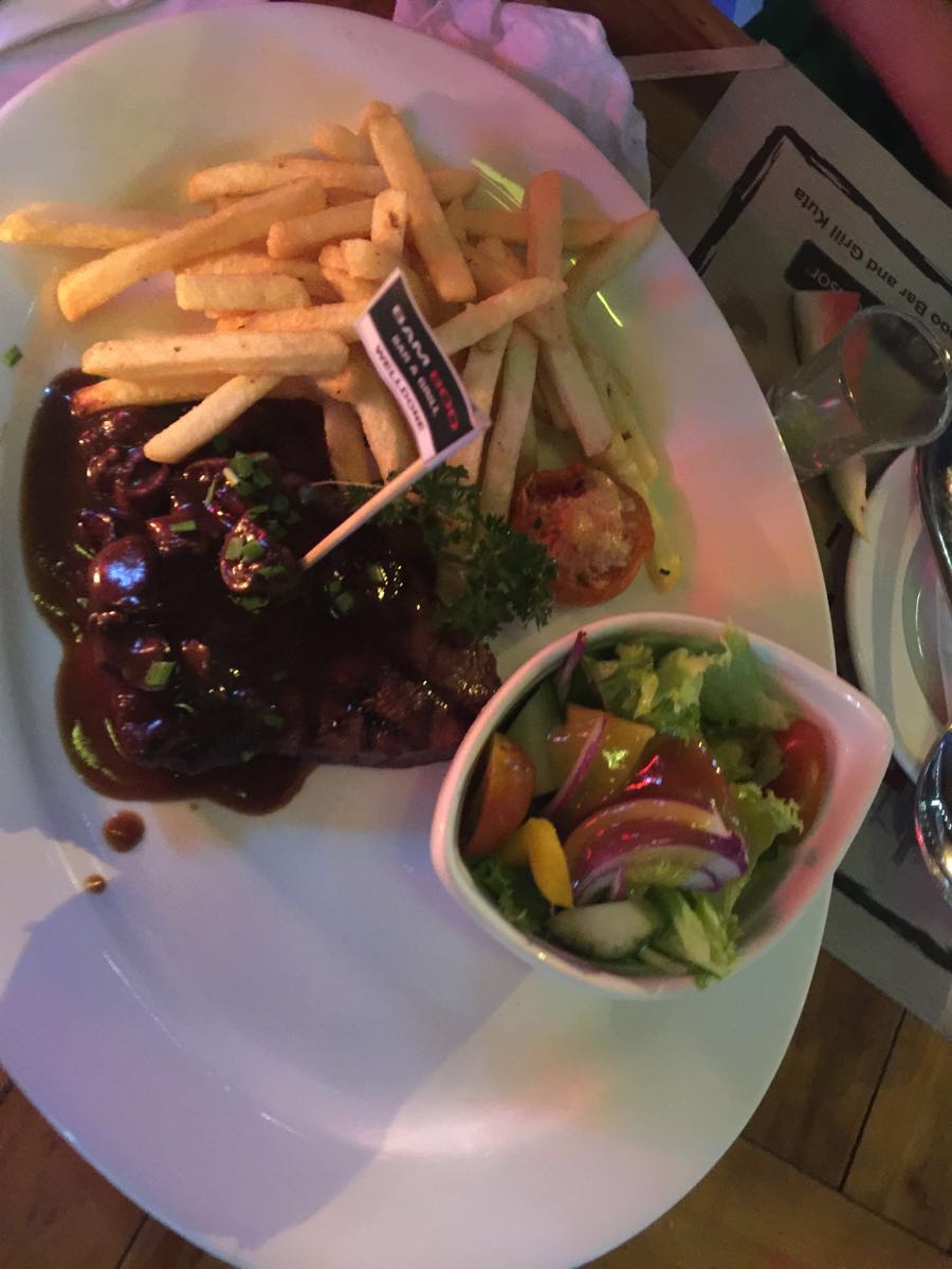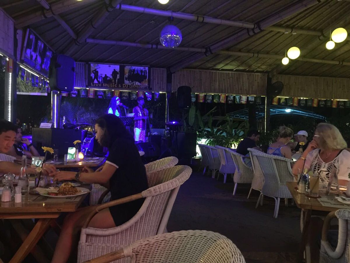 有歌手驻唱,气氛不错。大部分都是欧美客人,比较热闹。印尼炒饭还不错,生蚝烤得不错,其他的也可以。