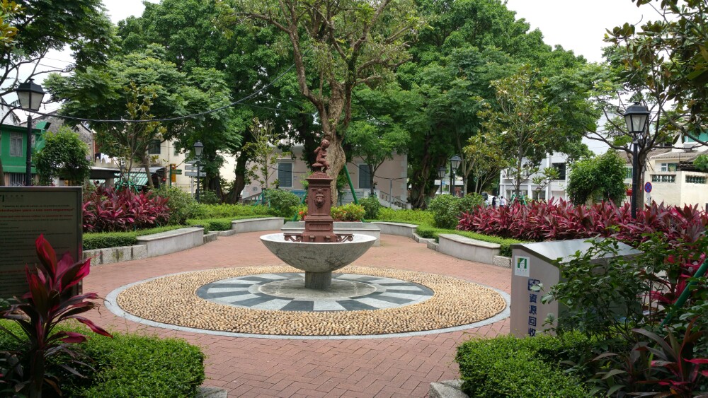 其实就是一个位于十字路口中央的圆形小街心花园,花园不大,但布置得还蛮精致漂亮,所有到路环市区的...其实就是一个位于十字路口中央的圆形小街心花园,花园不大,但布置得还蛮精致漂亮,所有到路环市区的巴都会在这停靠上下客,安德鲁蛋挞店就在边上,继续往海边走则可以去到圣方剂各教堂、