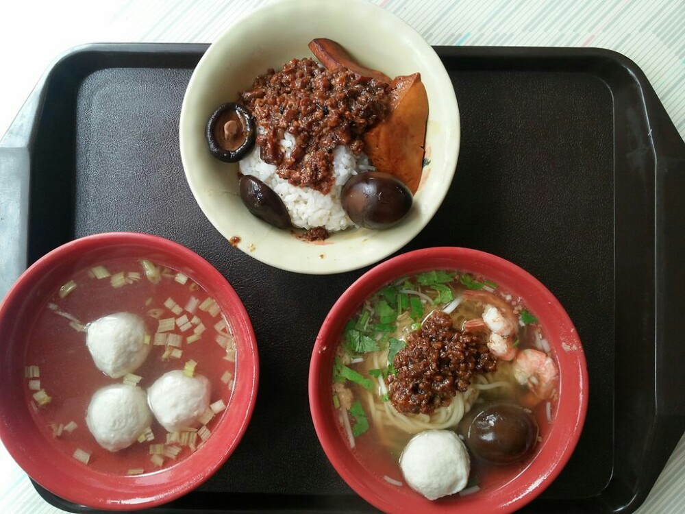 在台湾,几乎没人不知“度小月”担仔面,它是台南最有名的一道小吃。这家分店就在赤崁楼边上,店内座无虚席,是参观完赤嵌楼解决午餐的最佳选择。一碗看似简单的美味小吃,背后用心制作的过程,已在络绎不绝的品尝人潮和远道而来的外地客,得到了最实质的肯定。其最独门的配方就是特制的肉燥,只有特定传人才能知道肉燥调配的配方和比例,加上用虾子熬煮的汤头,另外有一尾虾、蒜泥、香菜相佐提味。