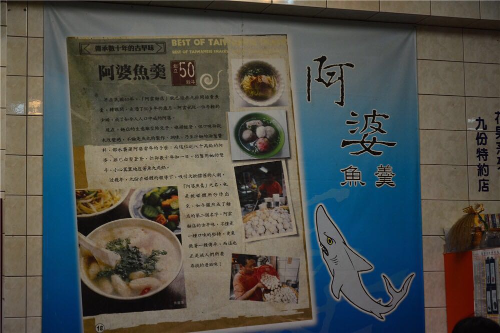 网友2016-07-04九份的鱼丸味道非常好,所以也特别有名九份的鱼丸味道非常好,所以也特别有名。阿婆的店看样子开了很久,店面破破烂烂的感觉,不过不影响口味,鱼丸,综合鱼丸,还有肉燥饭什么的,都挺吸引人。