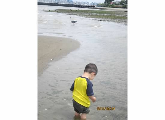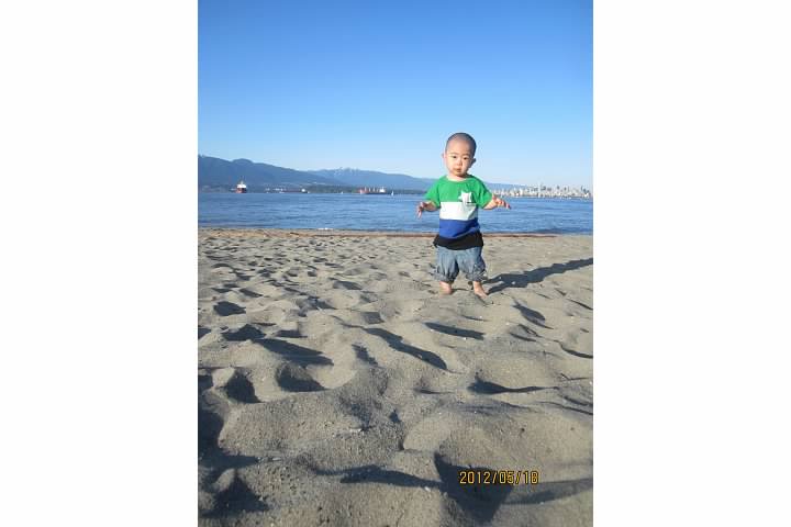 我曾认为这个沙滩是绝好的蹓儿子的地方,不怕磕着碰着,一踩一个脚印的沙滩,比家里的地毯更接地气,带个小桶小铲就可挖沙堆城堡,不太漂亮的贝壳随手就能挖出,我曾经还幻想着说不定哪天挖出个象拔蚌来,我们的晚饭就有着落了:( 可是,有一天发现正处在“口欲期”的儿子不但在家见什么都往嘴里放,在沙滩上连沙子都糊满了嘴巴。一声惊呼,此地景色固然漂亮,可也不能如此“秀色可餐”啊。