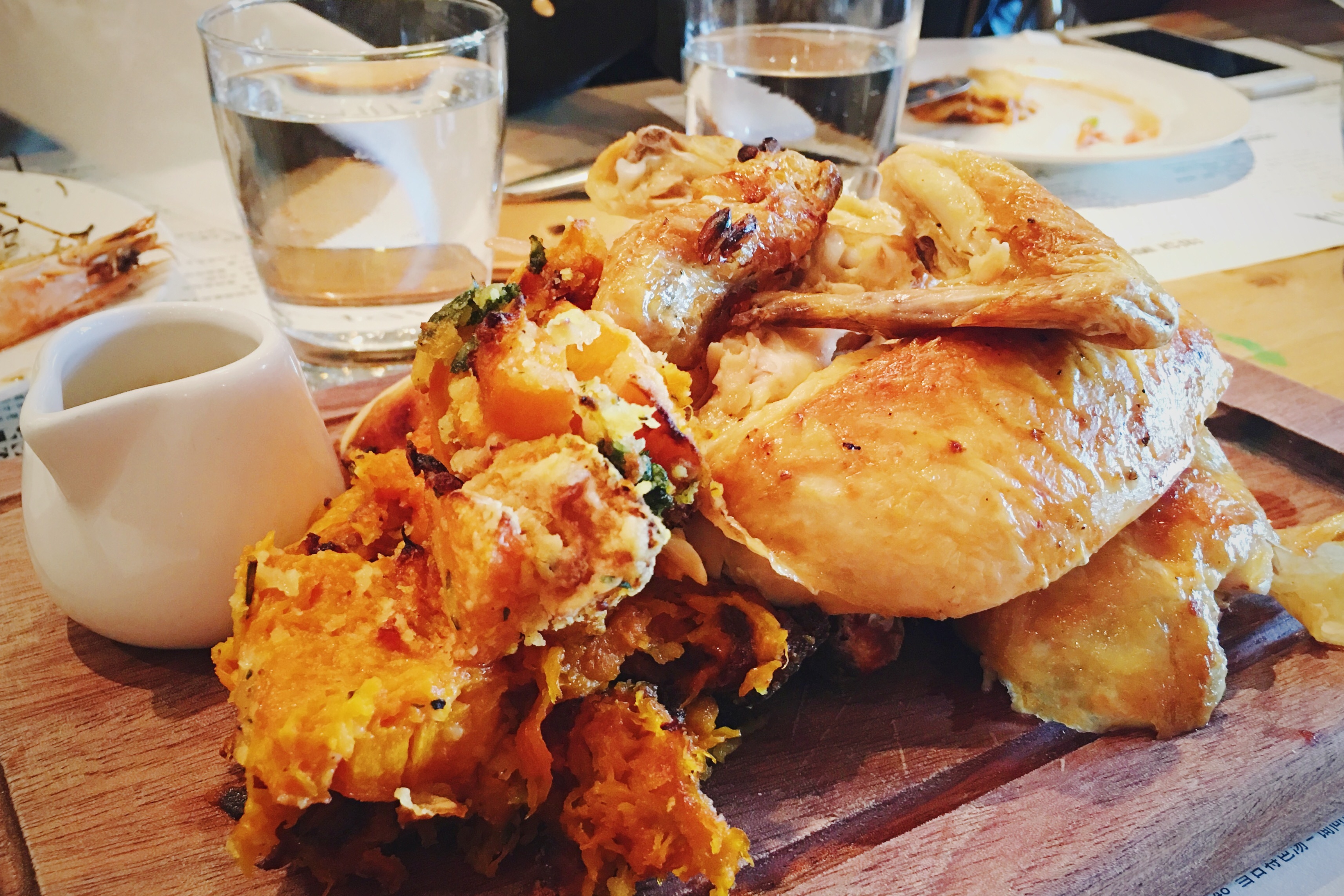香嫩咸鲜的烤鸡,调料的味道深入骨髓,嫩滑的鸡肉和鸡皮上几滴性感的鸡油,向外传达着不可抗拒的诱惑魅力