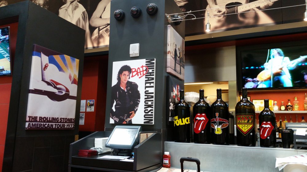 网友2016-07-18看到了我最爱的迈克杰克孙,激动被这家餐厅主题所吸引,是以摇滚为主题的餐厅,里面贴满了美国很具年代感的摇滚歌手的海报。看到了我最爱的迈克杰克孙,激动!店内播放的电视也都是音乐MV,很有feel,总之很喜欢这家餐厅给人的感觉。