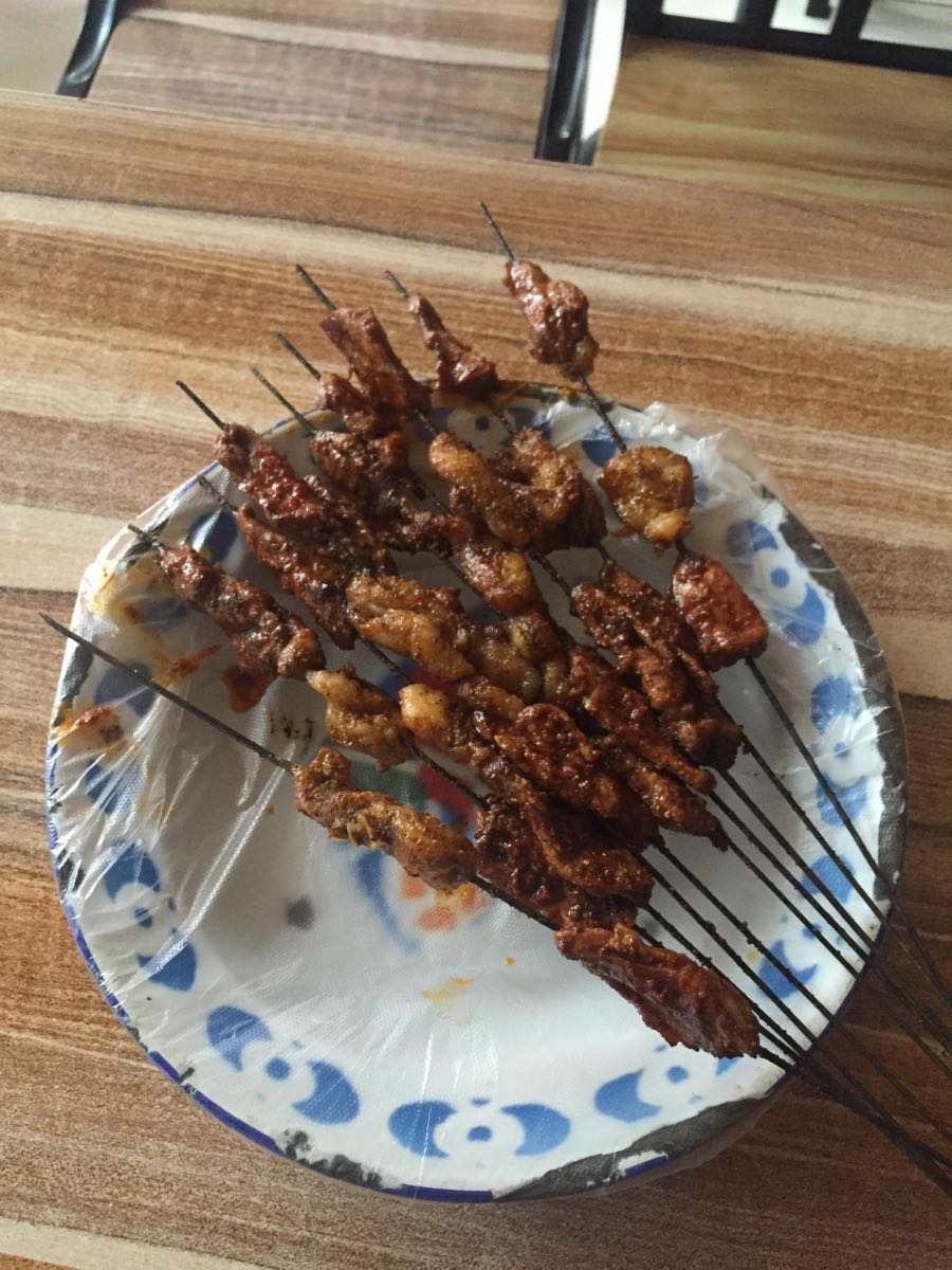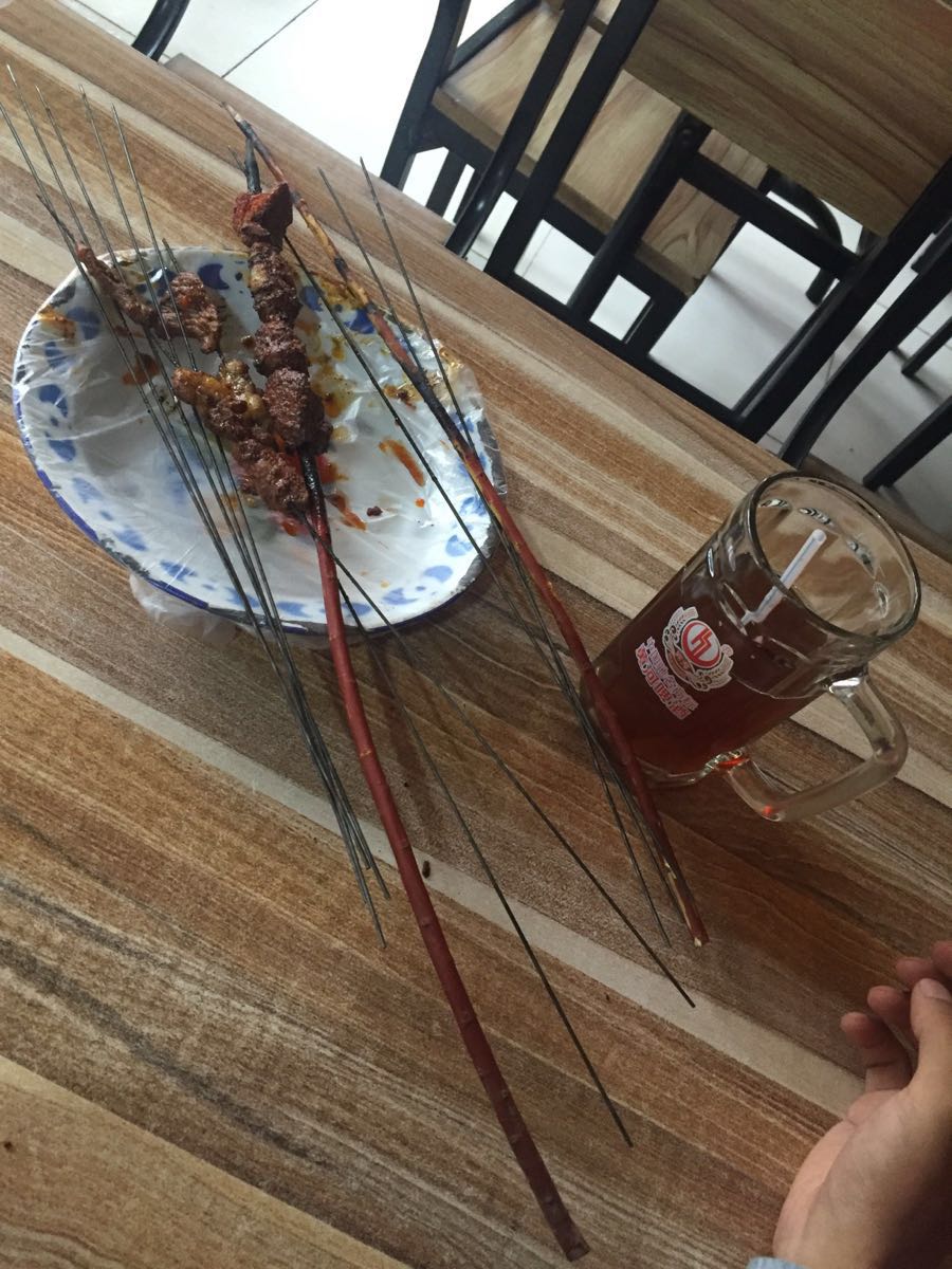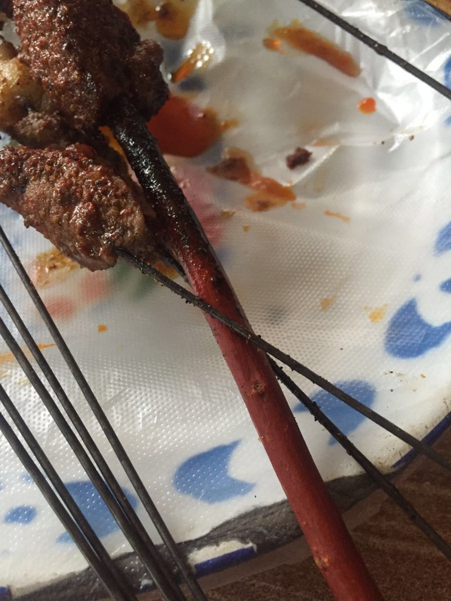 红柳羊肉串烤的不错的,很香,吃起来味道很好。