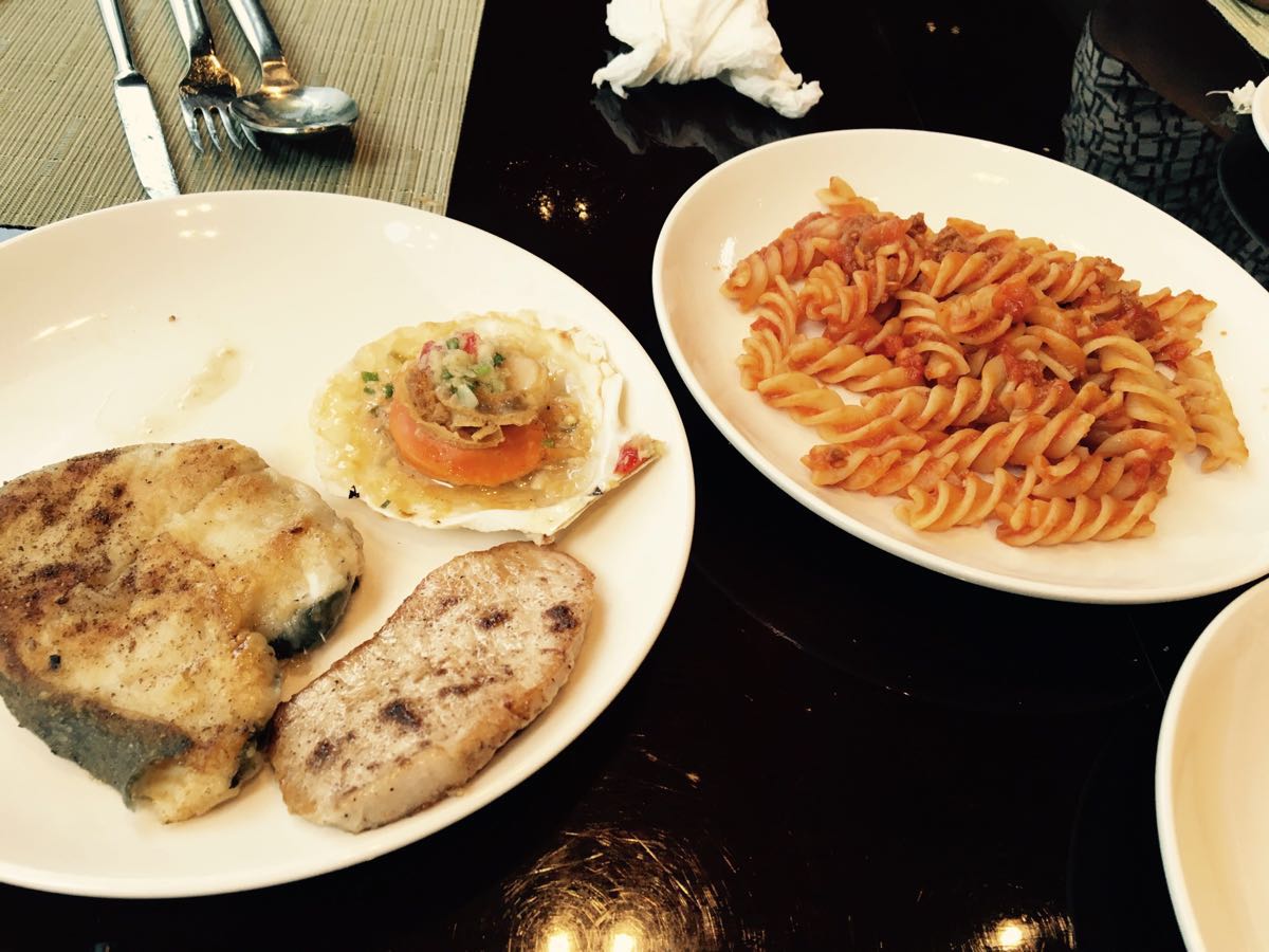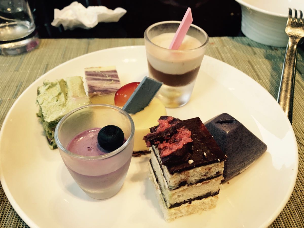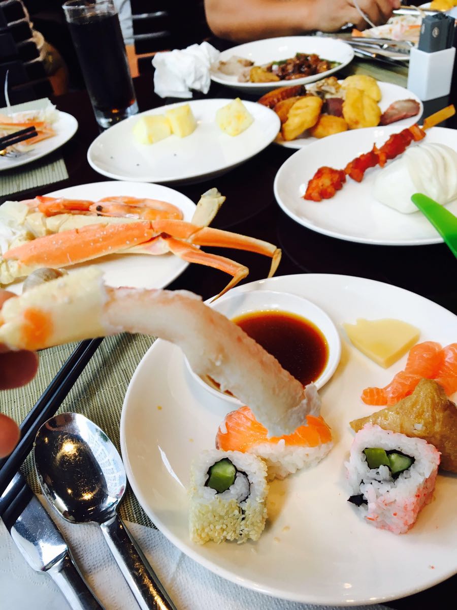 自助餐感觉价位偏高 其实东西也不是很特别 不过感觉还是蛮干净的 我们四个大人一个小孩 宝宝有宝宝椅和儿童餐具 看上去还蛮干净 海鲜还可以 蟹脚肉蛮多的 但是想吃小笼 晚餐好像没看到 里面的烂糊面很好吃的额 适合宝宝吃 还不错 水果还蛮好吃的蛮多蛮新鲜的~ 宝宝很乖 我们吃了一个半小时 宝宝自己坐着吃了一个多小时 餐厅收盘子好勤快 过两分钟就会有来收盘子的 干净是蛮干净 味道还行 服务也还行 整体好评
