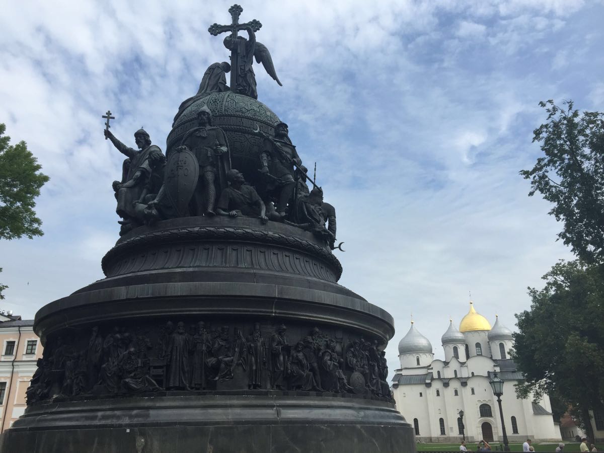 在俄罗斯诞生的地方诺夫哥罗德(始建于859年)正好待了一天,却逛了三次旅馆旁边的克里姆林宫(始建于1044年,与里面的圣索菲亚大教堂都是俄罗斯最古老的建筑)。晚10点如血残阳中的克里姆林宫,半上午阳光灿烂中的克里姆林宫,半下午大雨如注中的克里姆林宫,千年光阴在这阴晴圆缺中仿佛一点点展示在人们面前,就像每次在千年铁塔脚下一样,不由得肃然起敬。 这也是这次俄罗斯之行中参观的第三个克里姆林宫,而几个月前每次听到克里姆林宫,唯一想到的还只是莫斯科的克里姆林宫,以为它像我们的故宫一样,独一无二。其实克里姆林宫在俄语中的意思是“高墙围起来的城堡或要塞”,因此很多地方都可以叫克里姆林宫,比如圣彼得堡的彼得与保罗要塞。 每到一个新地方,就像每次读到一本新书一样,都更加意识到自己的孤陋寡闻。而旅行中几乎每天都游荡在不同的街道,接触着不同的人,听着不同的语言,看着不同的景致,虽然也会遇到各种各样的麻烦,却如饥似渴,乐此不疲。