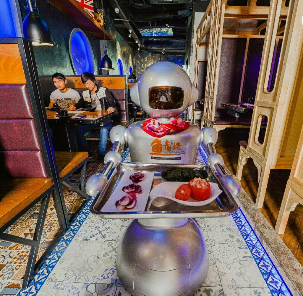 鱼智造机器人餐厅装修很有特色,智能烤鱼的味道太好吃了,特别是鱼香味的烤鱼,还有吊缸烤串很好吃,干净卫生有特色,最好玩的是萌萌的机器人传菜过来,摸摸它的头才走,太有趣了,小孩子特别喜欢去吃,好吃又好玩的一家餐厅,很值得去。