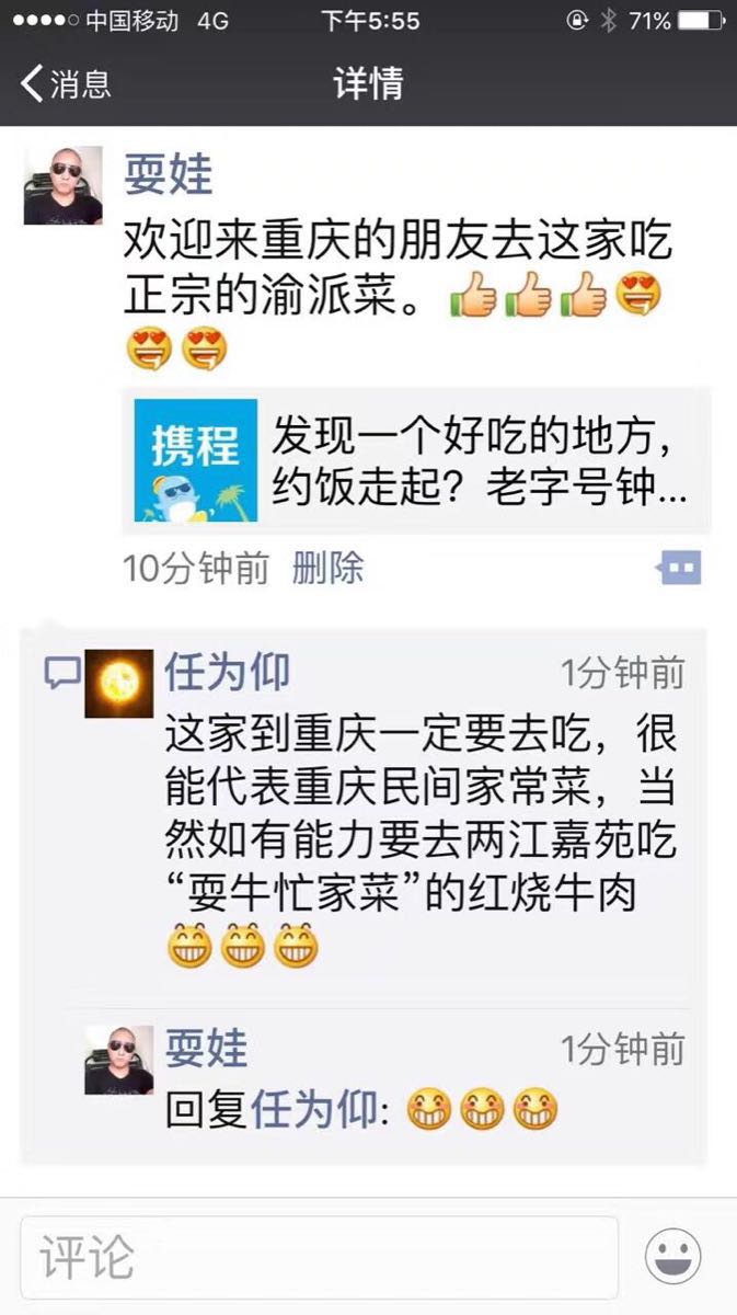 非常好吃,每个菜都是重庆的老味道,传统和现代化的结合,卖不完了菜品当天全部处理,保证第二天菜品...