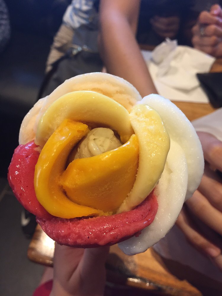 非常喜欢Amorino店里面的购买方式,井然有序:选想要的甜筒大小,选择自己喜欢的味道,然后像欣赏艺术家在画画一样看工作人员把自己喜欢的味道一个花瓣一个花瓣围起来,最后做成玫瑰的样子。Gelato的口感柔顺丝滑,味道丰富但又很自然。相信如果你买给你爱的人的话,ta肯定会非常喜欢。