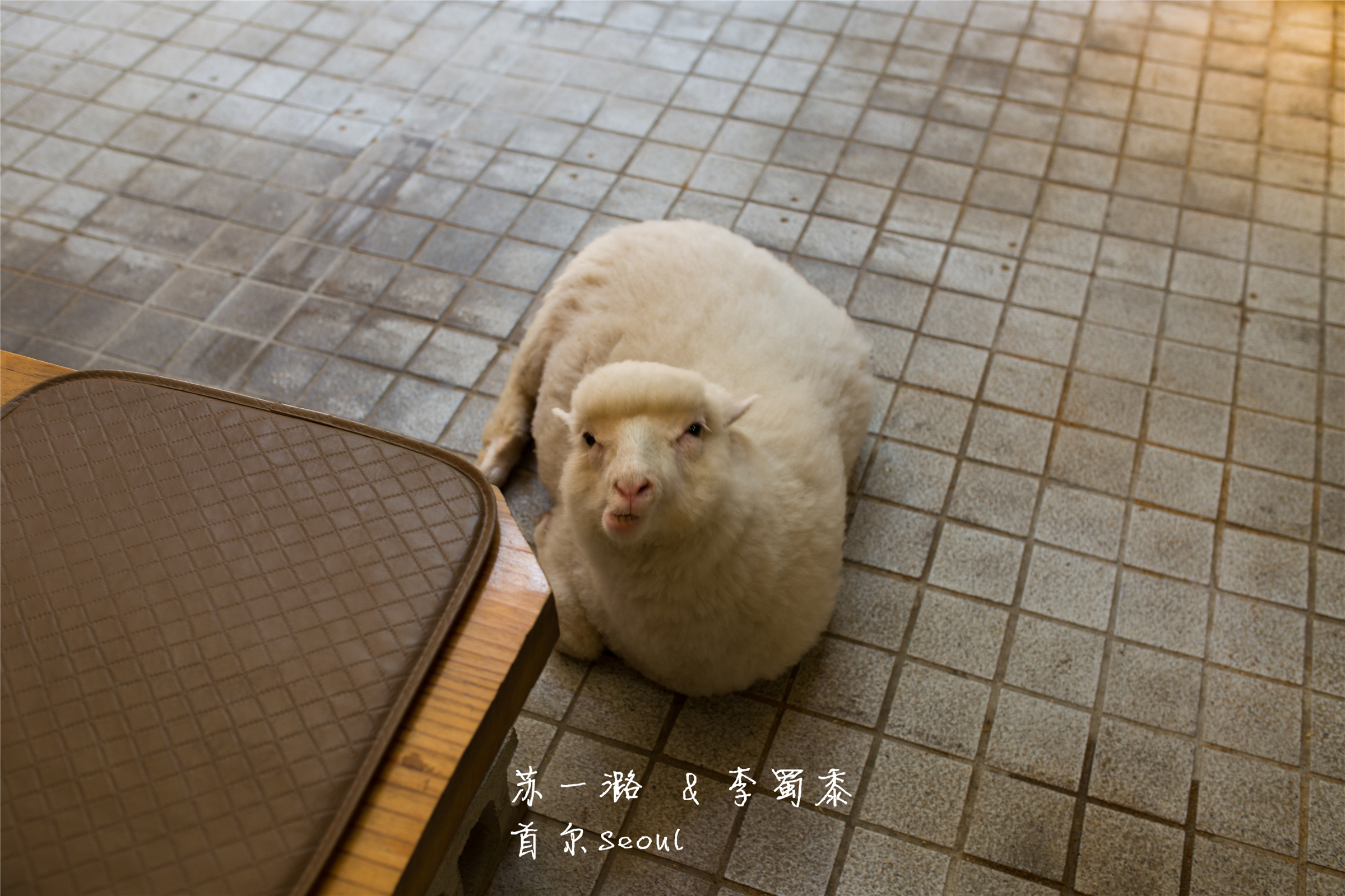 这家咖啡厅从名字就能看出其理念,感谢自然,崇尚自然。这家咖啡厅距离弘大非常近,位于地下一层,店里有两只吃得胖胖的小羊,在这里消费的顾客可以跟小羊一起玩哟~店里除了咖啡,招牌甜点是华夫饼。我们在喝咖啡的时候,就能听到小羊“咩~”“咩~”的叫声,完全原生态。店长大叔长得像宫崎骏,他时不时地去打扫羊窝,给小羊喂食。我们准备离开时,店长让我们进去羊窝给小羊喂草吃。小羊的毛非常柔软,让人止不住想去揉呀!