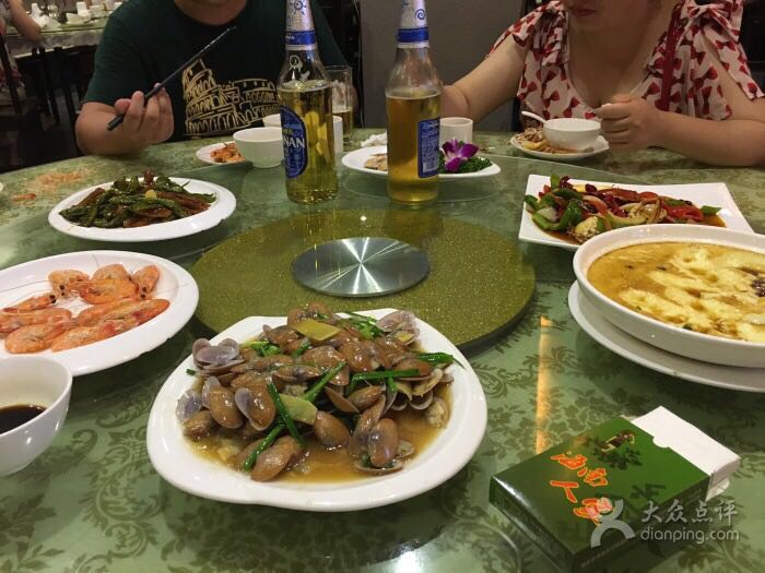 团购的套餐量比较小,味道还是不错的,最后加的一个什么鱼干之类的菜88元,很咸基本不能吃,感觉很坑!酒水较贵,我们点了两瓶最便宜的啤酒50元,个别服务员不热情就不多说了!餐厅是开放式的,尽量坐在里面的桌子会稍微凉快些!