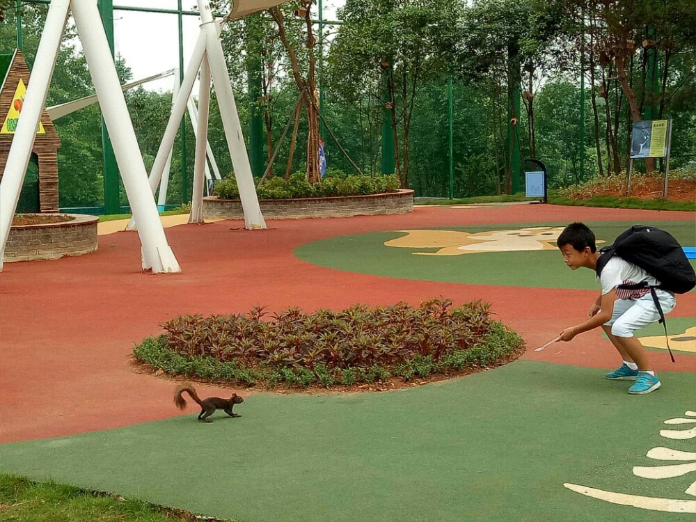 孩子们喜欢的小松鼠!请看图!旁边还有大型的充气城堡游乐设施,是有浅浅的水的,所以孩子妈请备两套以上服装,他们在这里玩得更久!