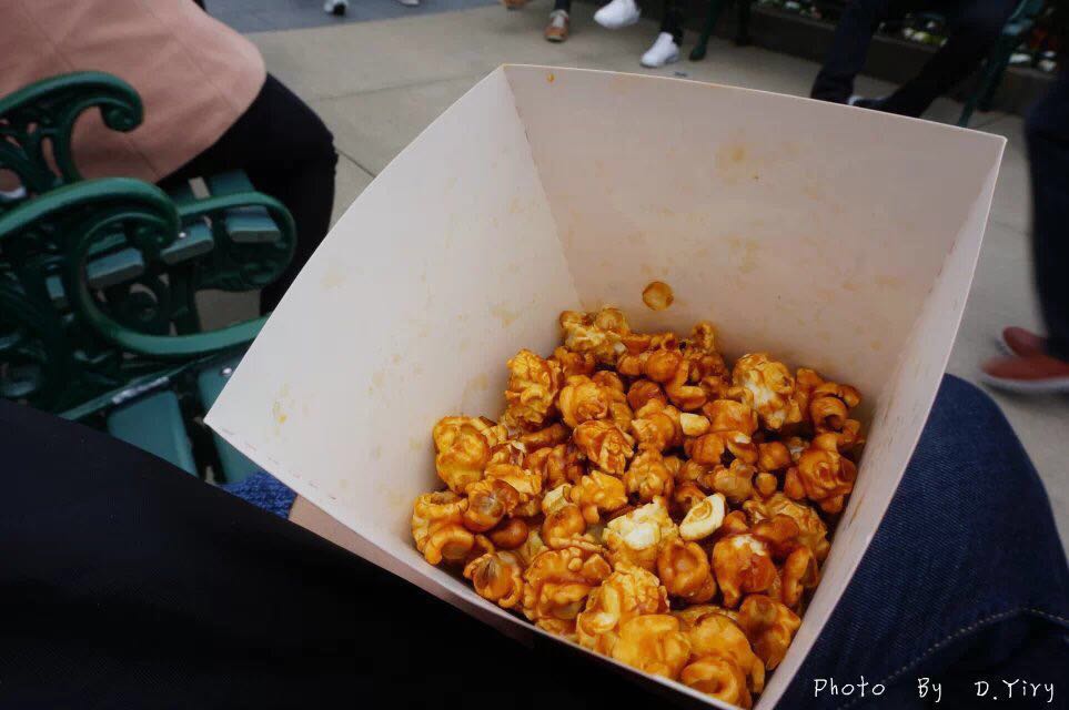 网友2016-08-11爆谷是用焦糖炒制的,甜味很足,颗粒也很大, 还可以加钱买爆谷桶,都是米奇形状的网络购买了一日三餐券,一张是小食券,可以兑换爆谷或者雪糕条。爆谷是用焦糖炒制的,甜味很足,颗粒也很大, 还可以加钱买爆谷桶,都是米奇形状的。雪糕条我选了史迪仔的,是蓝莓味的,香港冬天不冷,吃雪糕条也没事。