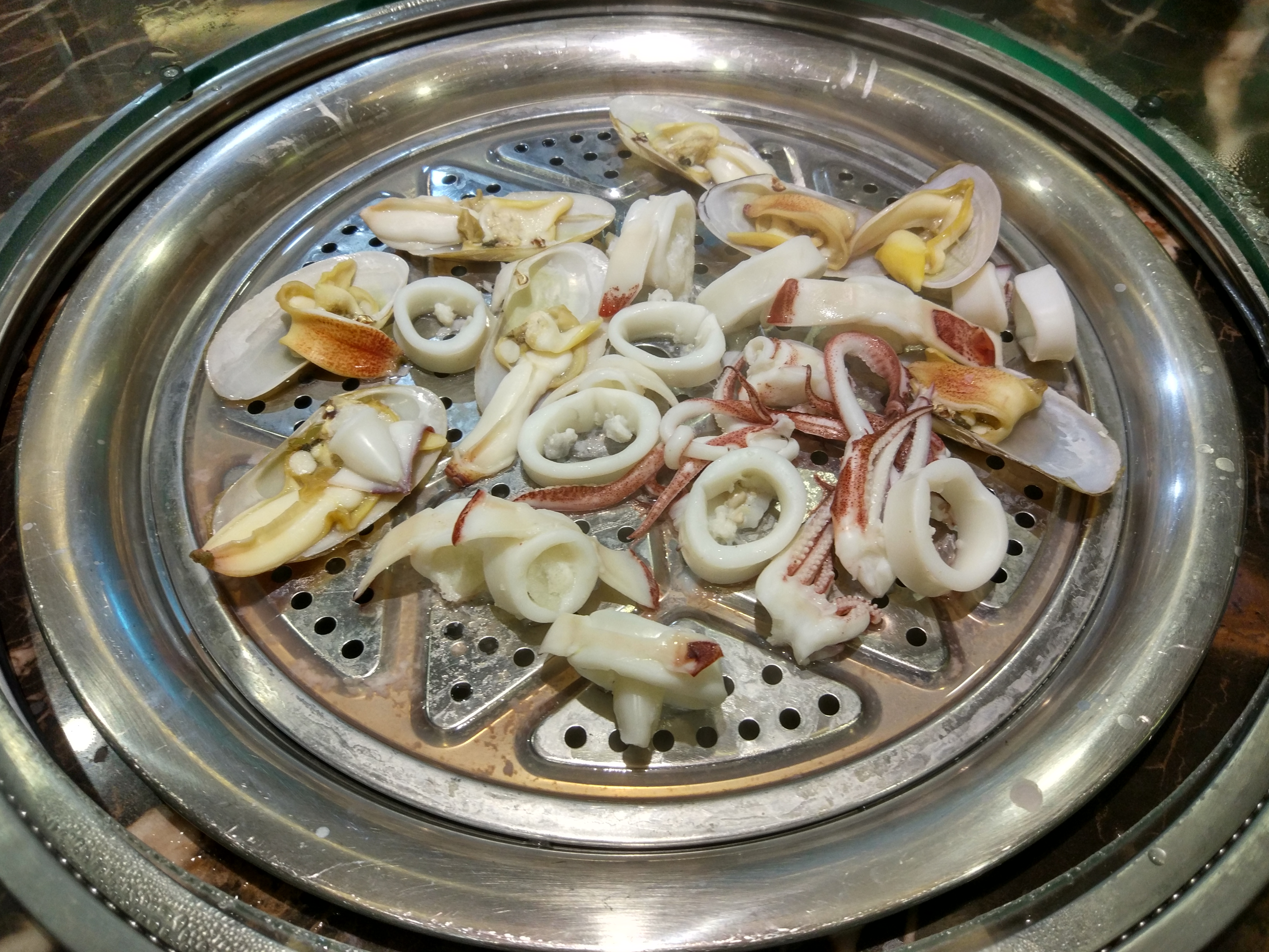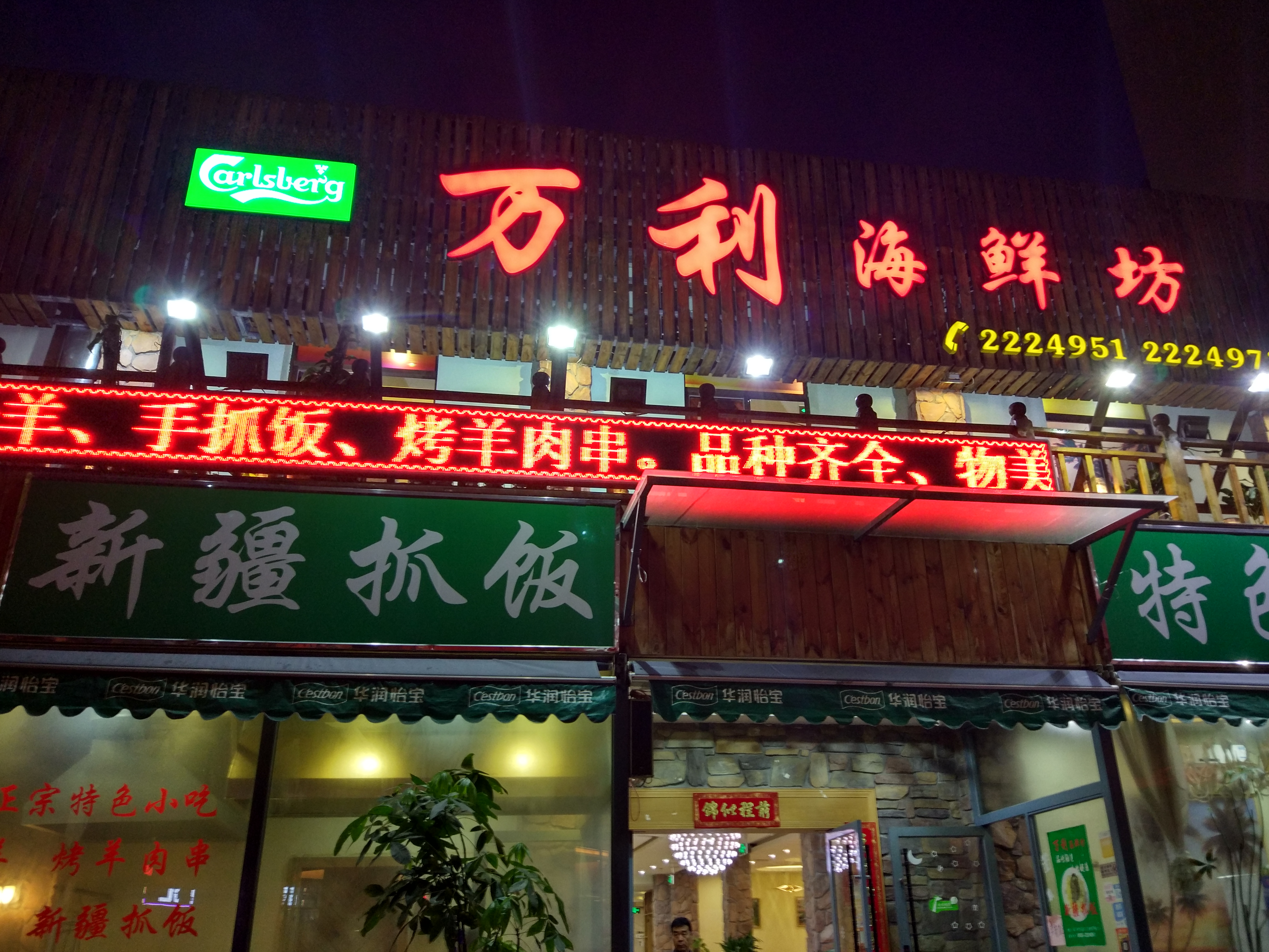 老板原来在八市做水产生意,自家供货保证海鲜坊的还显示才新鲜度。和厦门传统的酱油水煮海鲜不同,蒸海鲜对食材的新鲜度要求更高,蒸过海鲜的汤汁流到锅底,煮出的稀饭很是鲜美,酒足之后来一碗鲜美的海鲜汤汁喜欢,简直太美好了。一家以海鲜为主打的餐厅能把烤羊肉串和烤羊排做得如此美味实属难得。