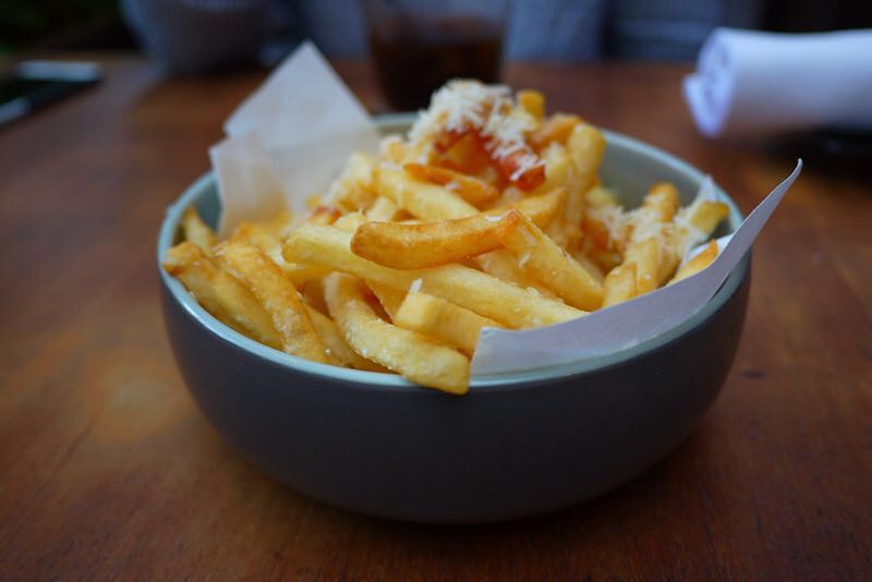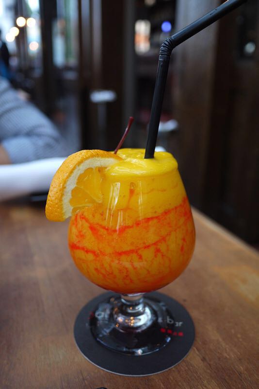 澳洲名厨Luke Mangan在新加坡开的店,在raffles city一层,靠近莱佛士酒店。朋友在我来之前就点了点了龙舌兰和薯条,问我喝什么。我说这几天非常辛苦,有点上火,还是喝点果汁吧。点了一个叫mango freeze,里面有芒果和热情果,非常浓郁的热带 风情。朋友热情地点了生蚝,薯条和羊排烩饭。生蚝新鲜弹牙,蘸着独特的蒜汁,完全不觉得腥。羊排烩饭端上来的时候特别香,单吃羊排有点咸,但是配饭吃会比较好。这个饭的感觉有点像小米,里面有石榴籽,切成两半的小番茄,不仅配色活泼可爱,而且口感酸甜爽口。