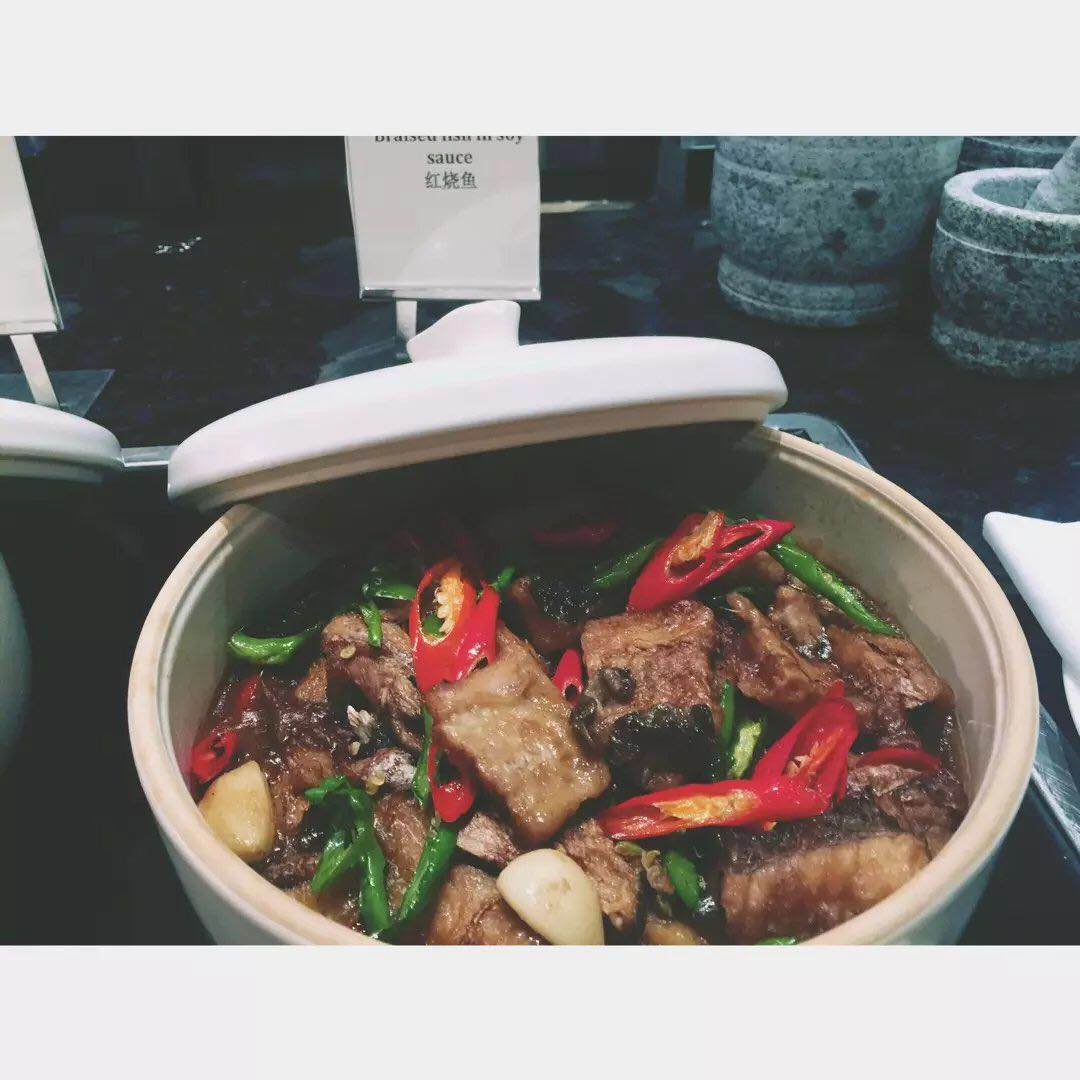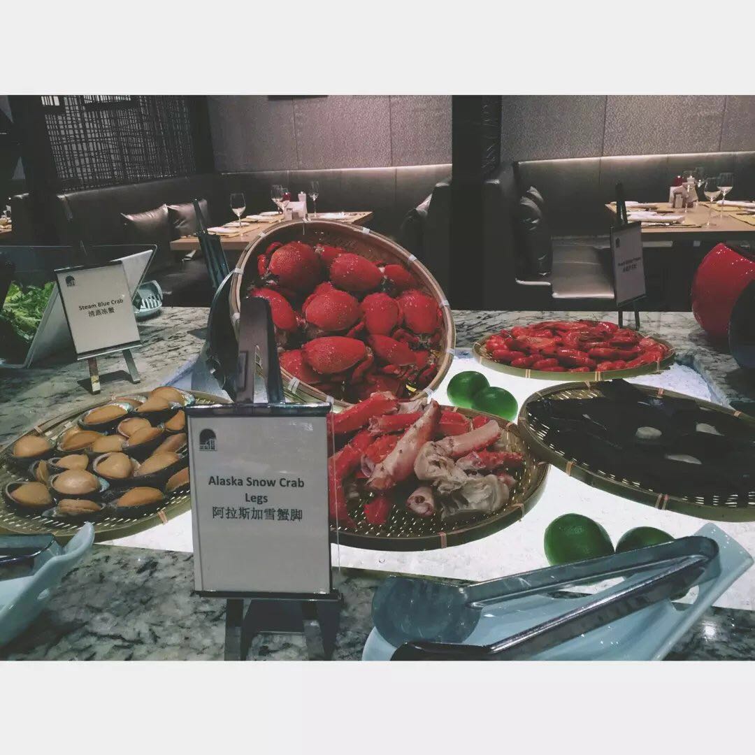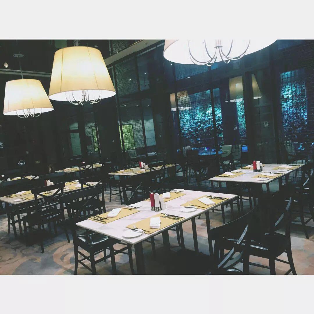 【交通】位于南京最繁华的1912街区附近,在长江路上,旁边有总统府新建的六朝博物馆和南京图书馆,都是地标性的建筑,到南京随便问一个人都知道。酒店就坐落在这里,时尚低调奢华,服务算是南京所有酒店中最好的,个人很喜欢的一家酒店。来到这里的人也许并没有华丽的外表,但都有腹有诗书气自华的气质。可以坐65路等在总统府下车,或者地铁2号线在大行宫下步行过来。 [ 环境和菜品 ] 环境上真是无可挑剔,除了他在负一楼,多少会觉得有些许压抑,和情不自禁就让你联想到的潮气,但是整体设计布局都是可圈可点的。 餐厅分为几个区域,室外也有一部分,还有专门的儿童游乐室,方便带儿童的住客。餐厅有西餐区,面条区,烧烤区,海鲜区,日料区,甜品区面包区等等。推荐西餐区,这边的厨师都还蛮帅的说,菜品卖相很好,口味也不错,牛肉羊肉都做的很软烂,很入味儿。冬天那时候过来还有每人两只螃蟹,还可以点他们这儿最推荐的瓦罐汤和银鳕鱼。服务员会及时过来帮你撤换盘子,有微笑服务,还是不错的。