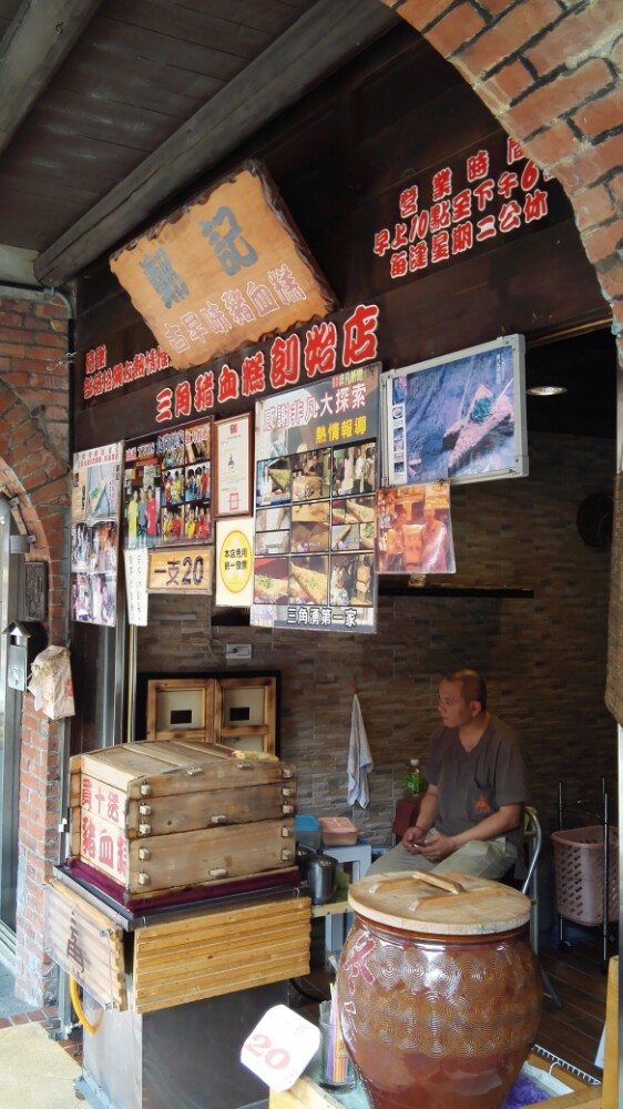 猪血糕又称为米血糕,台湾小吃的代表,曾被评为全球最怪异的食物之一。顾名思义,原料就是用猪血和糯米混制而成的,口感比一般的糯米糕还硬一些,这家郑记就在三峡老街上,号称是三角猪血糕的创始店,一支才20新台币,可谓价廉物美的老街美食!