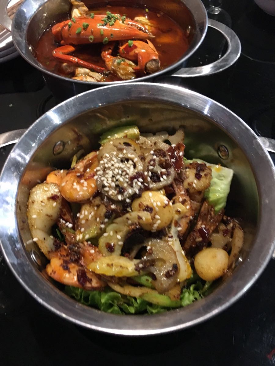 在巴黎吃的好吃的自助,香辣虾和香辣蟹各一份,其他那些配菜都是任点不限,可惜4岁的小朋友也要收半...在巴黎吃的好吃的自助,香辣虾和香辣蟹各一份,其他那些配菜都是任点不限,可惜4岁的小朋友也要收半价,这个感觉略吃亏,不过味道不错,而且各种不限点点配菜像虾滑,大虾,墨鱼仔,羊肉,牛肉,都很不错