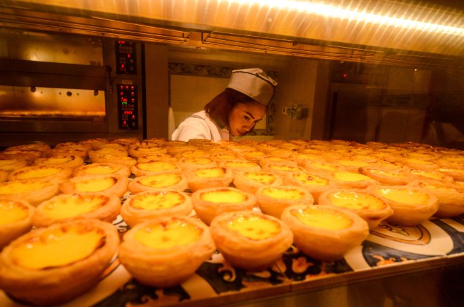 金黄的蛋挞、各式各色的猪扒包还有糯米蓝莓的班戟各种小吃应有尽有。卖相特别的诱人这里有很多的澳门美食,而且价格一点都不贵。卖相特别的诱人。虽然比起老街的食物多了很多款式和创意。金黄的蛋挞、各式各色的猪扒包还有糯米蓝莓的班戟各种小吃应有尽有。