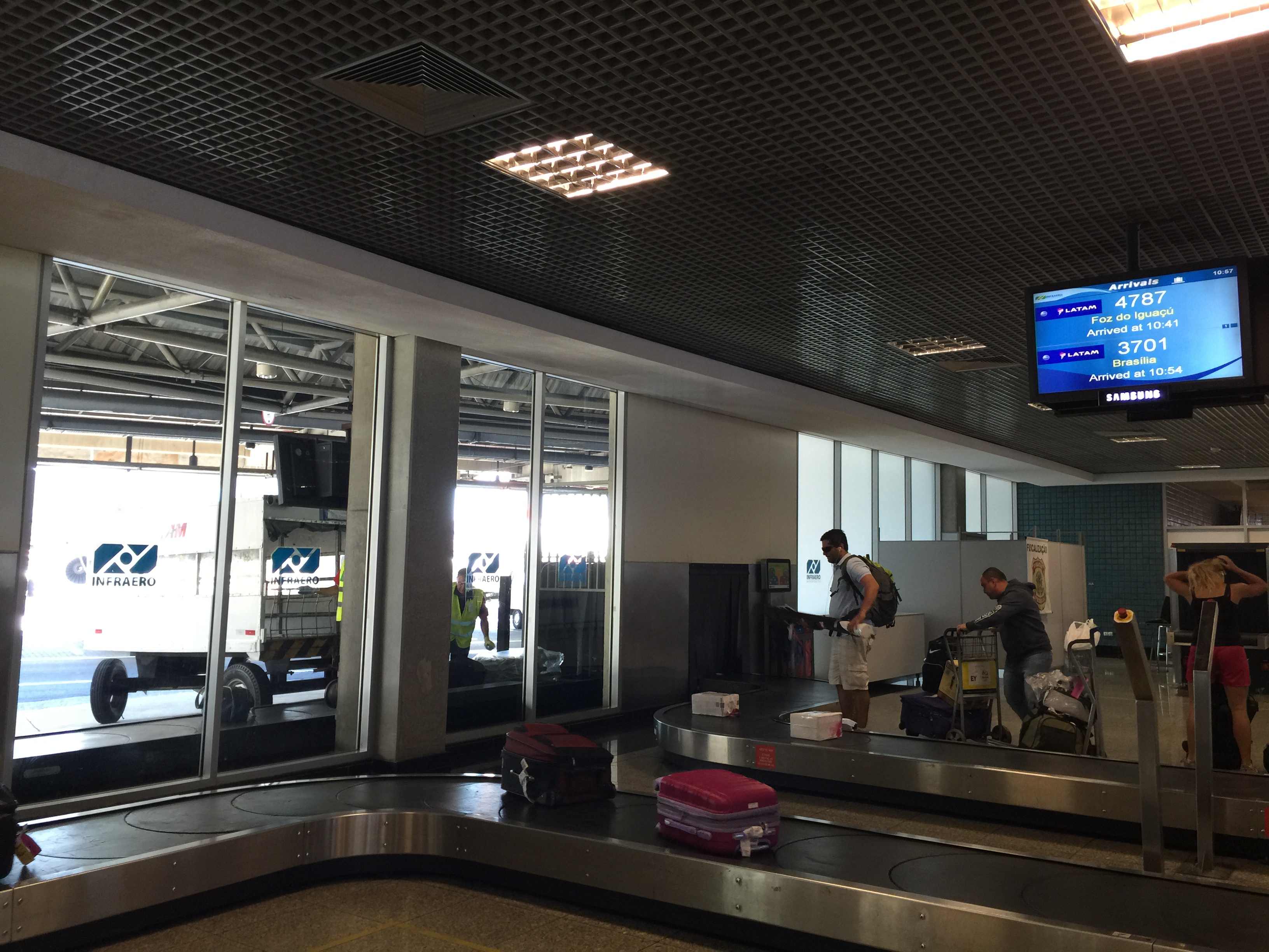 这个机场名称有点问题,孔戈尼亚斯机场应该是圣保罗的国内机场,比如我们从伊瓜苏过来的航班就降落在这里。 与圣保罗国际机场相比,这里就显得小了些,传送行李区都是那么迷你。 不过整个机场的各项配套还是比较完善的,也算麻雀虽小五脏俱全吧。出来打车也比较方便,有秩序且不怎么需要排队。