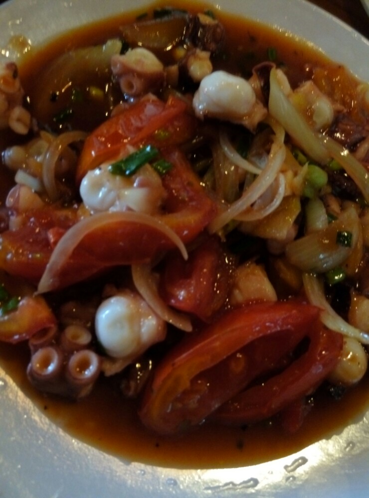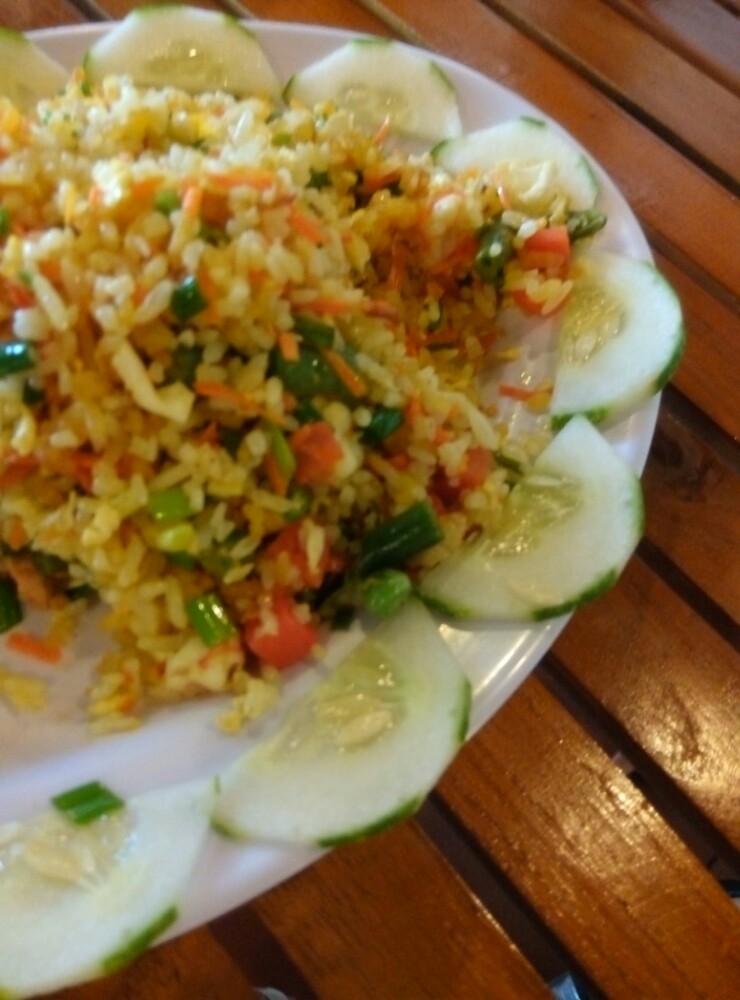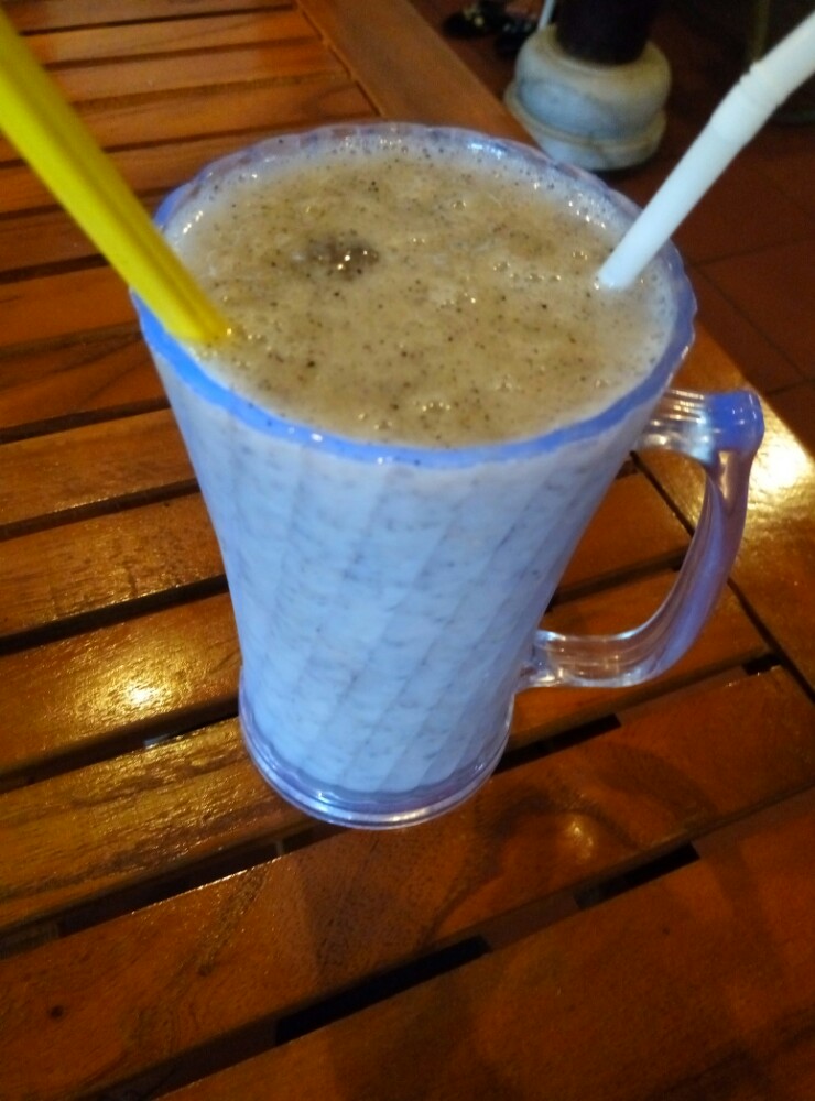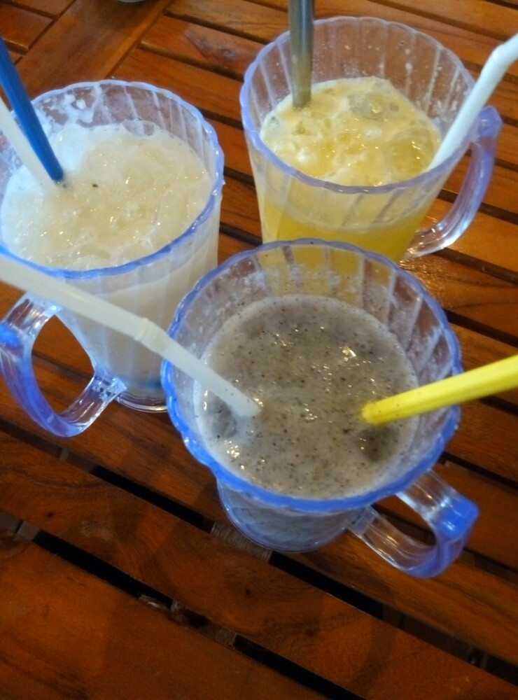 点了火龙果汁,喝起来像火龙果沙冰,亲戚在的妹子,必须提醒不加冰哟。可是加冰的口感很赞。另外两个是酸奶和百香果汁,喜欢柠檬味的可以点酸奶,不让还是别(⊙o⊙)哇。蔬菜炒饭,不喜欢吃干豆就别点,本人不忌,还可以的。菜单上看着像青菜,点了后悔,好苦,不走寻常路的来吧,送你吃。蛤蜊粥,不喜欢吃胡椒的让他不要放,超鲜,推荐。炒鱿鱼,只能说,在这点海鲜味道都不会错。