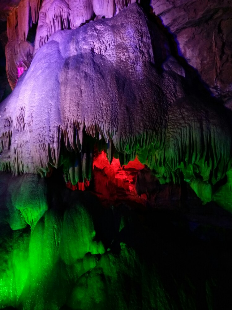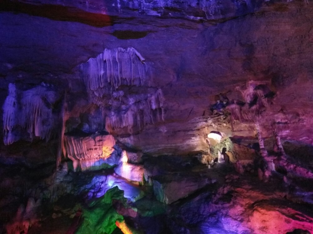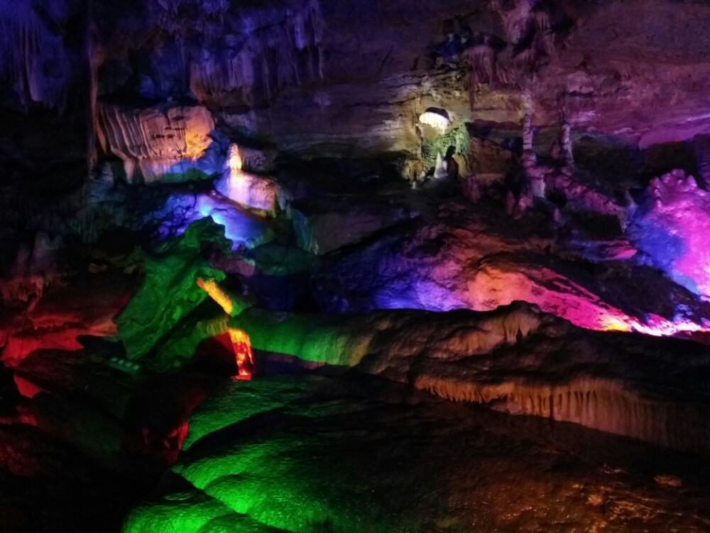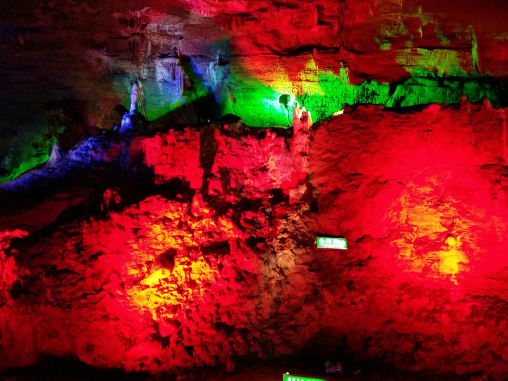 一个很大的天然溶洞,在灯光的照射下,五彩斑斓,绚烂多彩。